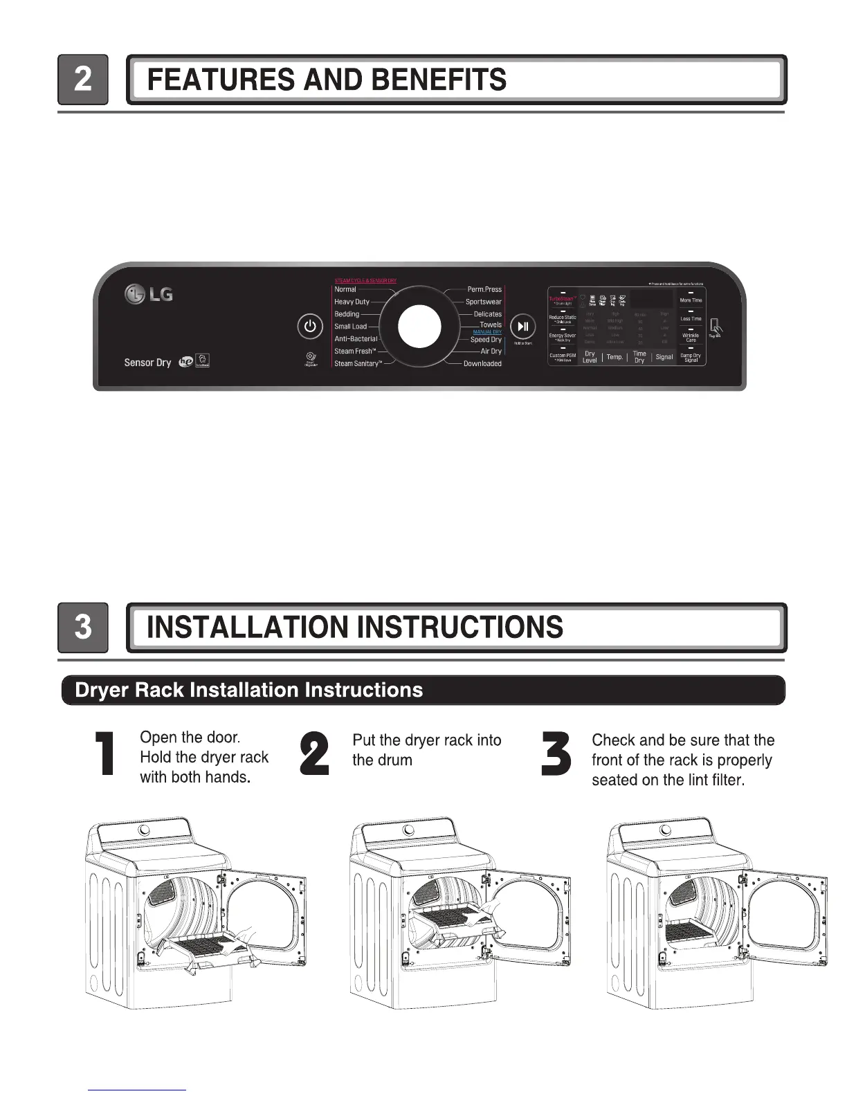 LG DLEX7700*E - Features and Benefits; Dryer Rack Installation Instructions