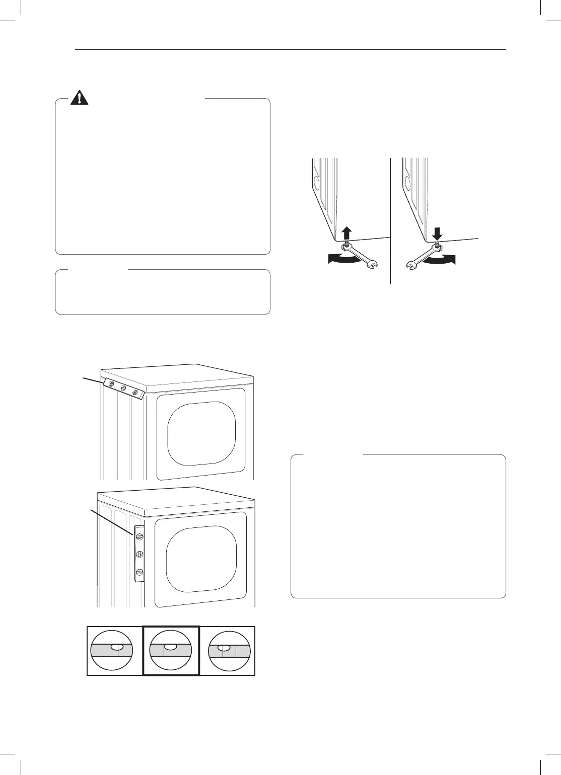 la sécheuse ou vissez les pieds pour l’abaisser.