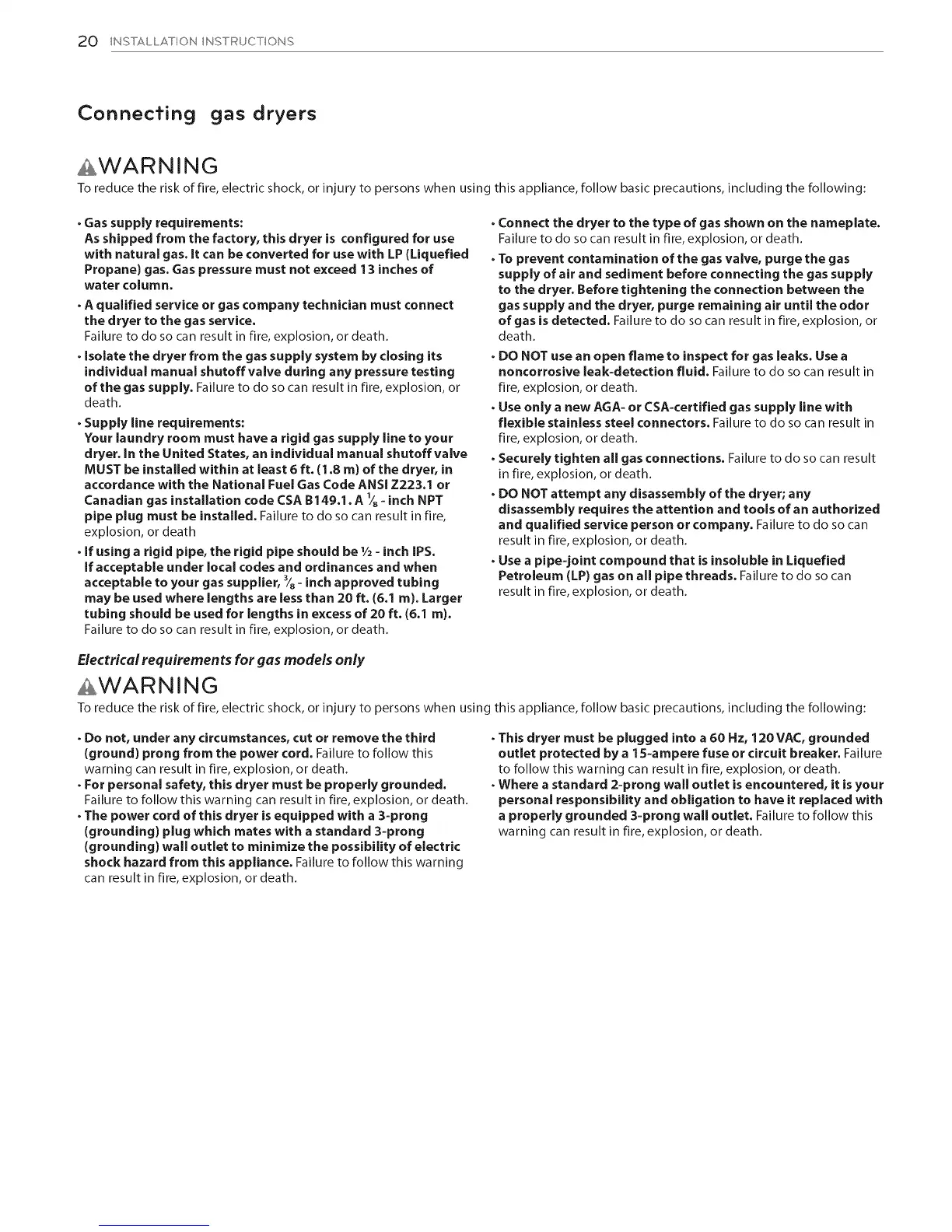 of gas is detected. Failure to do so can result in fire, explosion, or
