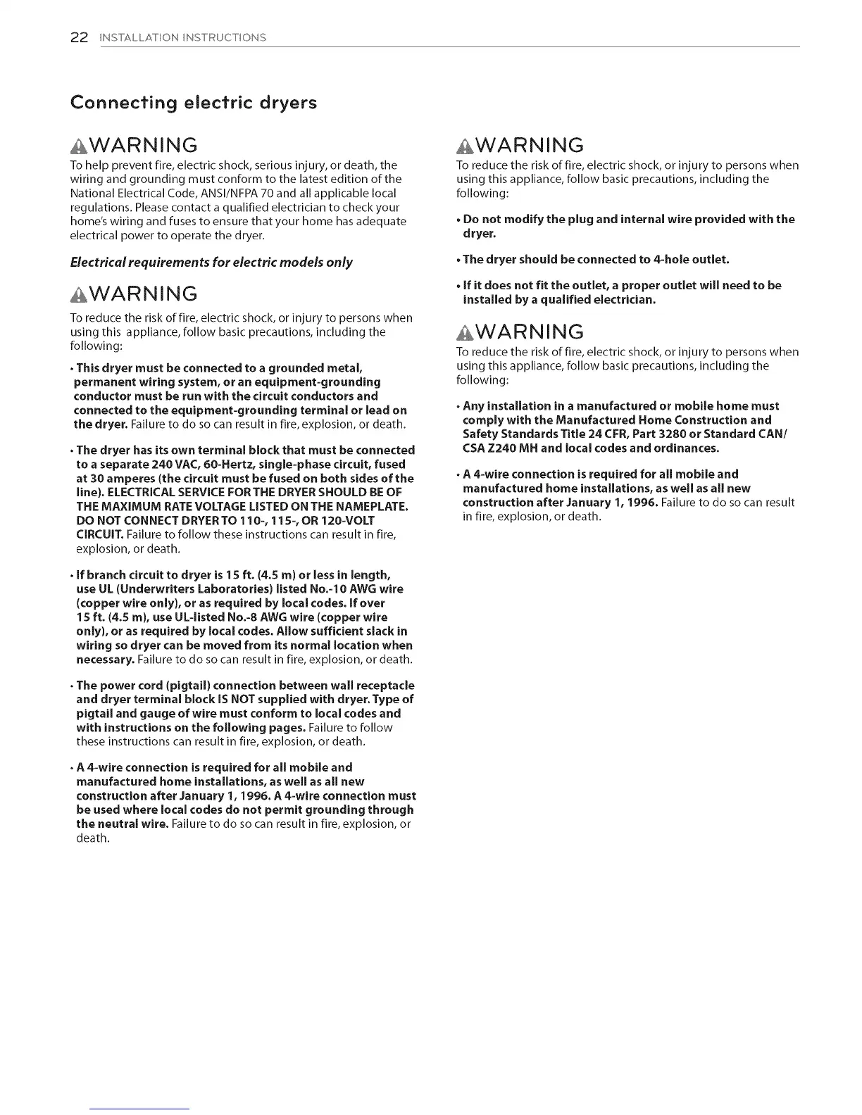 22 INSTALLATION INSTRUCTIONS