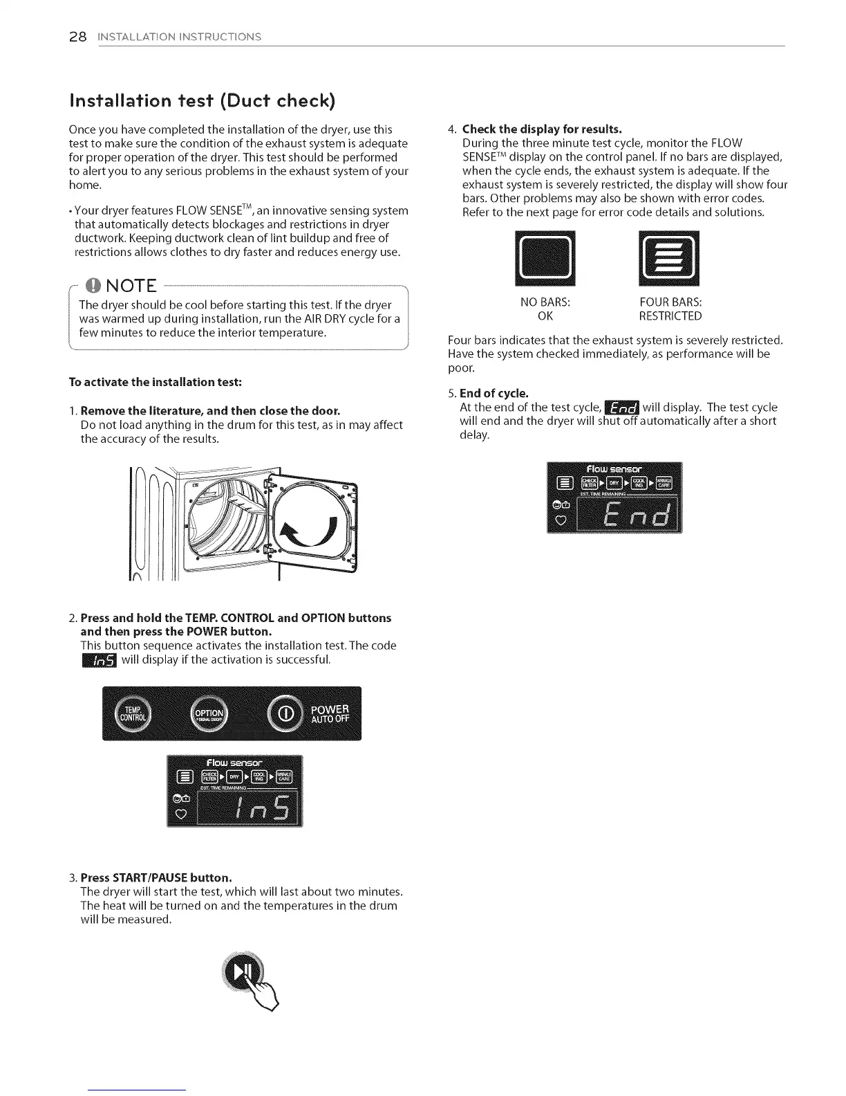 Once you have completed the installation of the dryer, use this