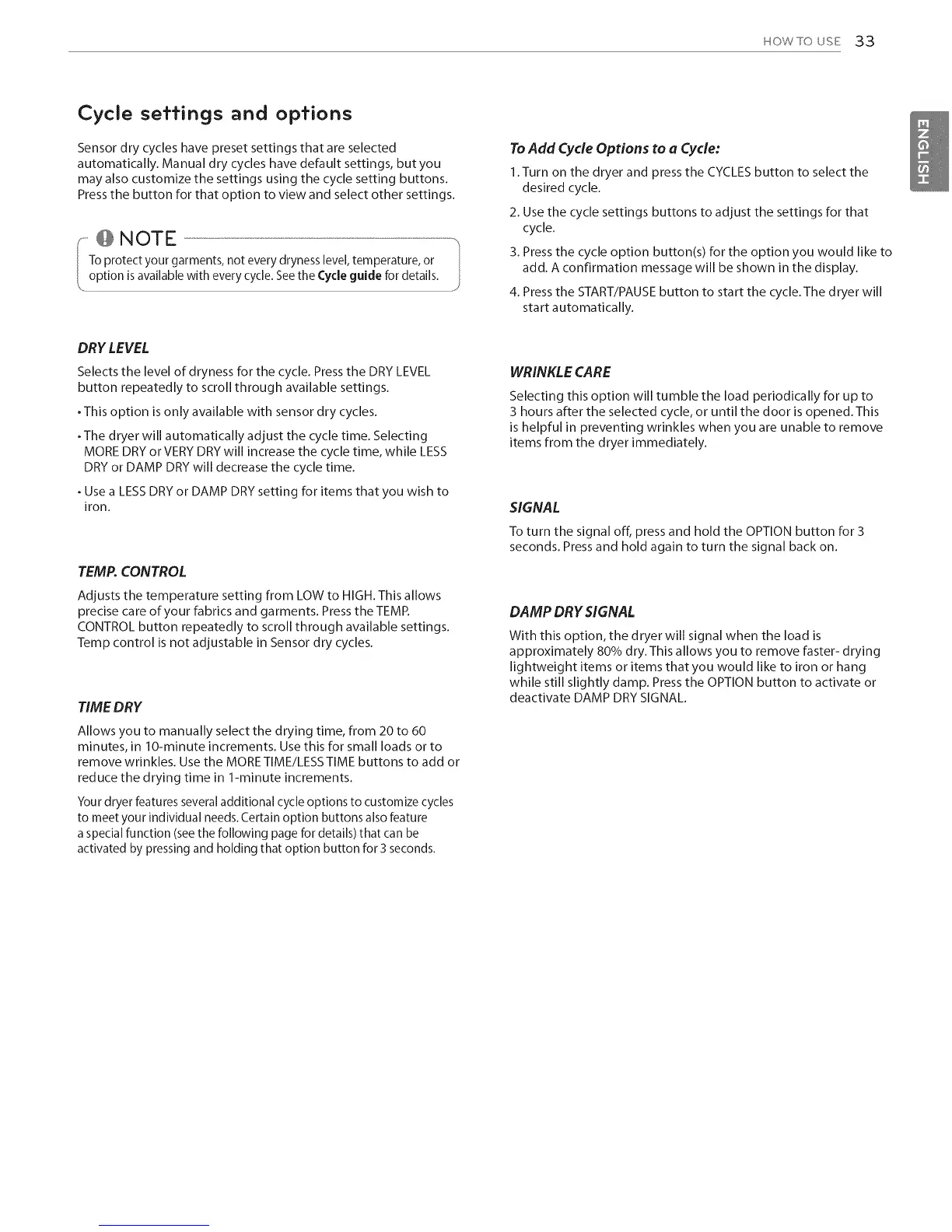 Your dryer features several additional cycle options to customize cycles