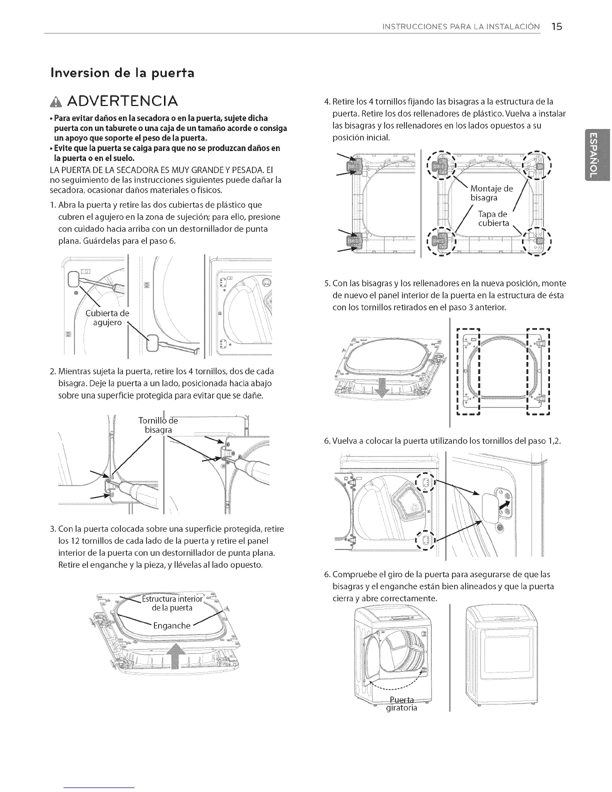 • Para evitar da_os en la secadora o en la puerta, sujete dicha