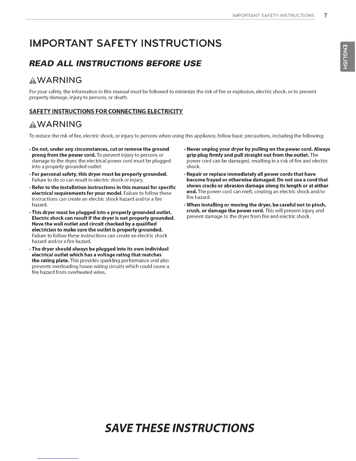 IMPORTANT SAFETY INSTRUCTIONS 7