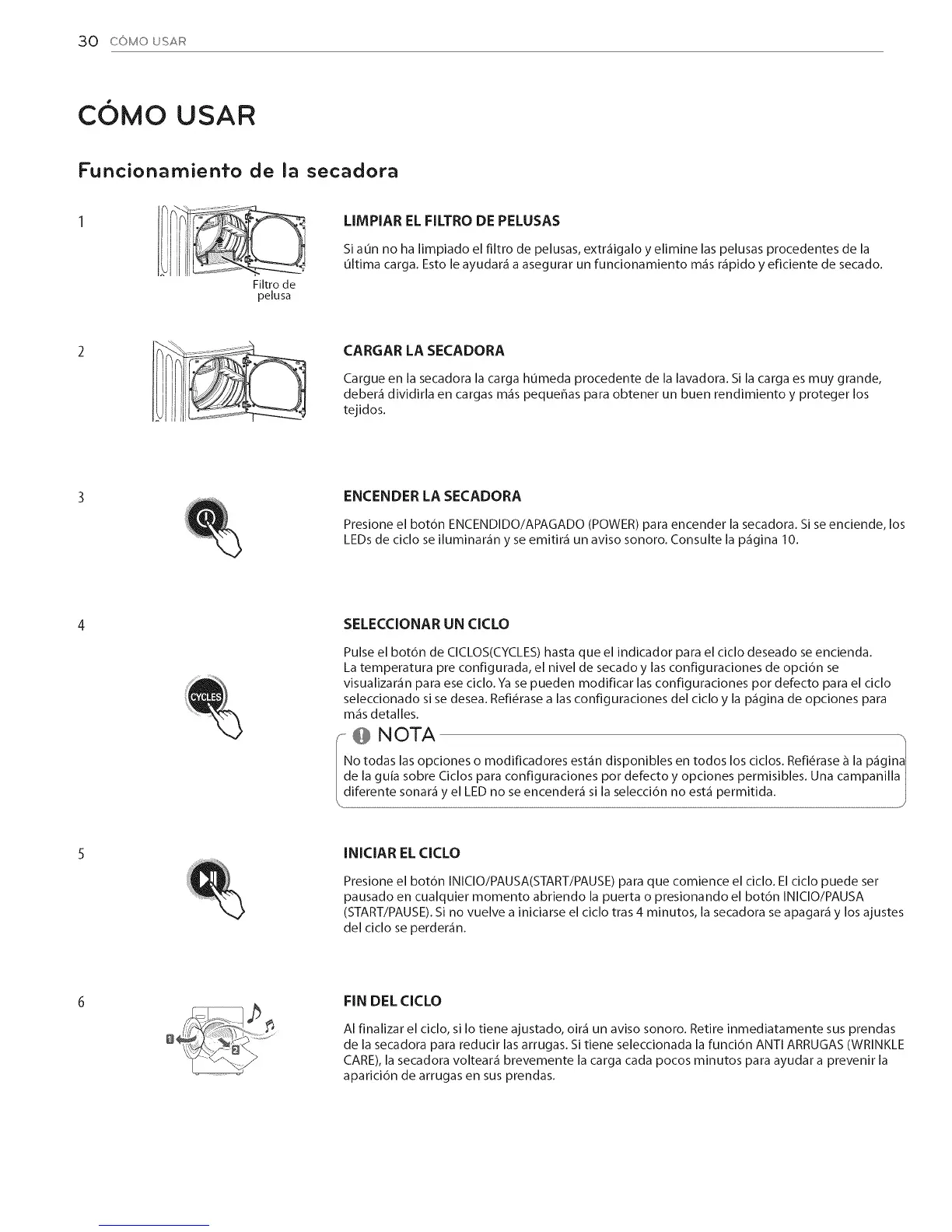 (START/PAUSE). Si no vuelve a iniciarse el ciclo tras 4 minutos, la secadora se apagar_ y los ajustes