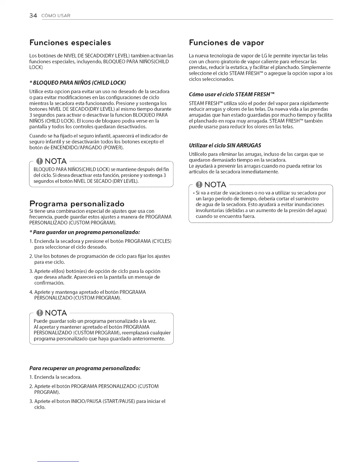 funciones especiales, incluyendo, BLOQUEO PARA NIhlOS(CHILD