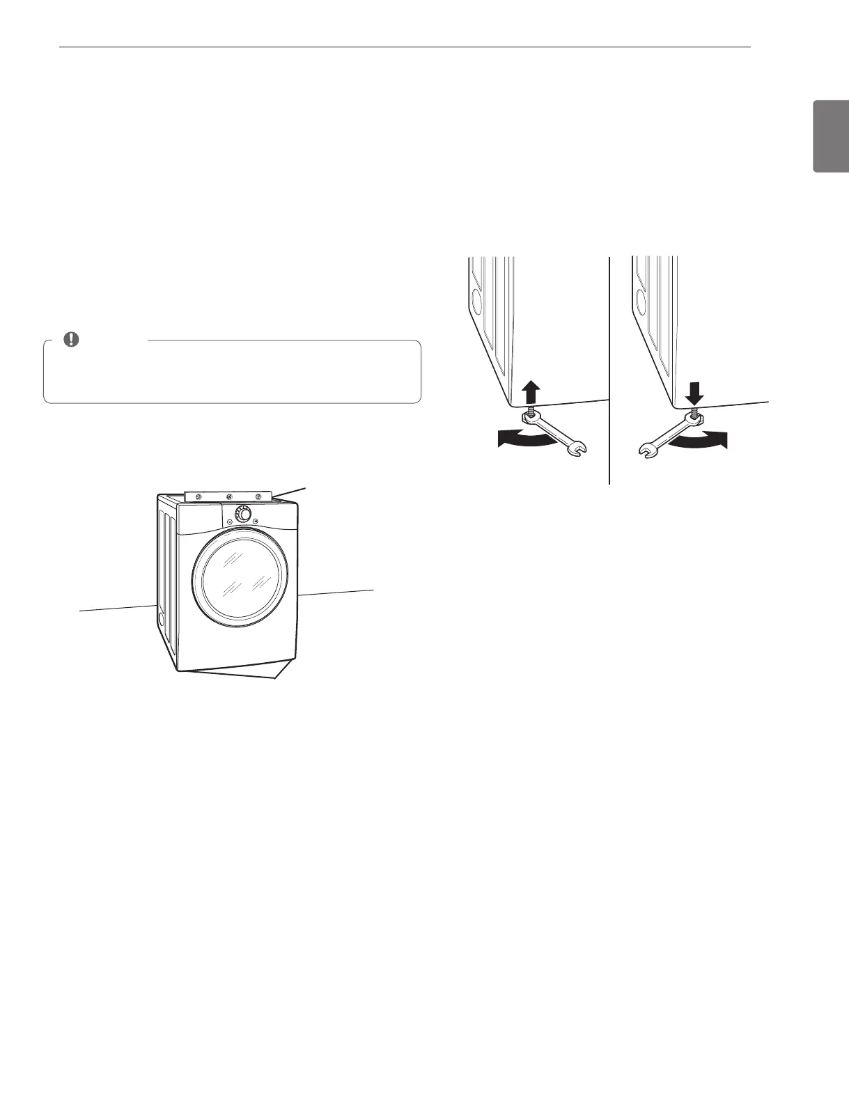 Adjust the leveling feet only as far as necessary to level the dryer.