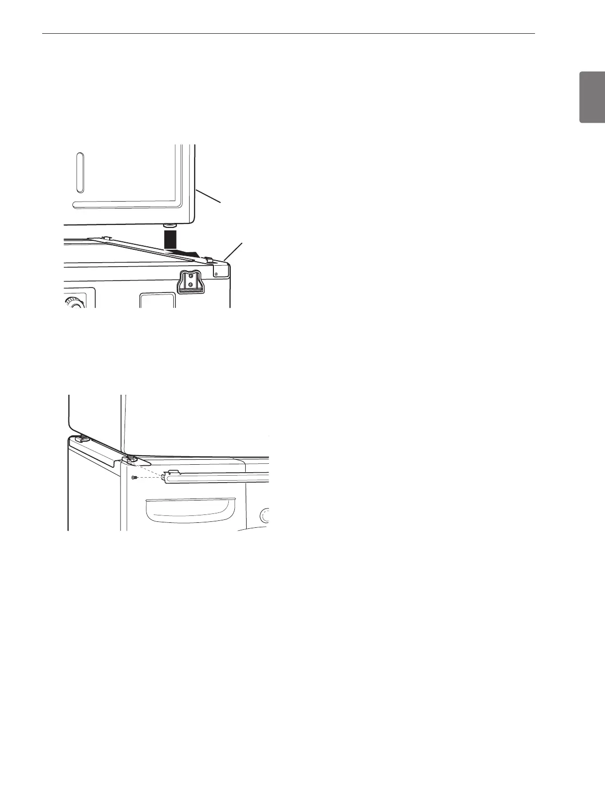 3. Place the dryer on top of the washer by fitting the dryer feet