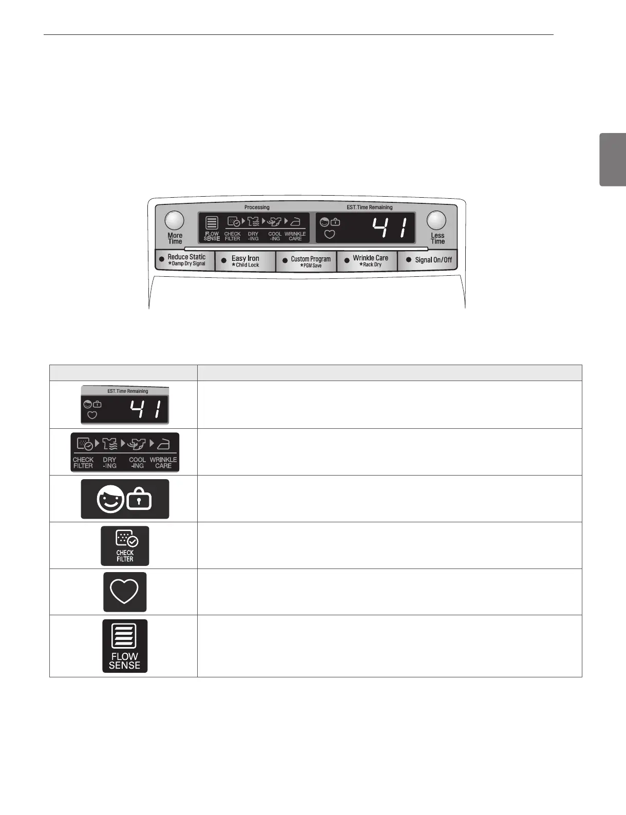correspondientes a su secadora. Cuando se gira el secador, la luz en la exhibición iluminará.