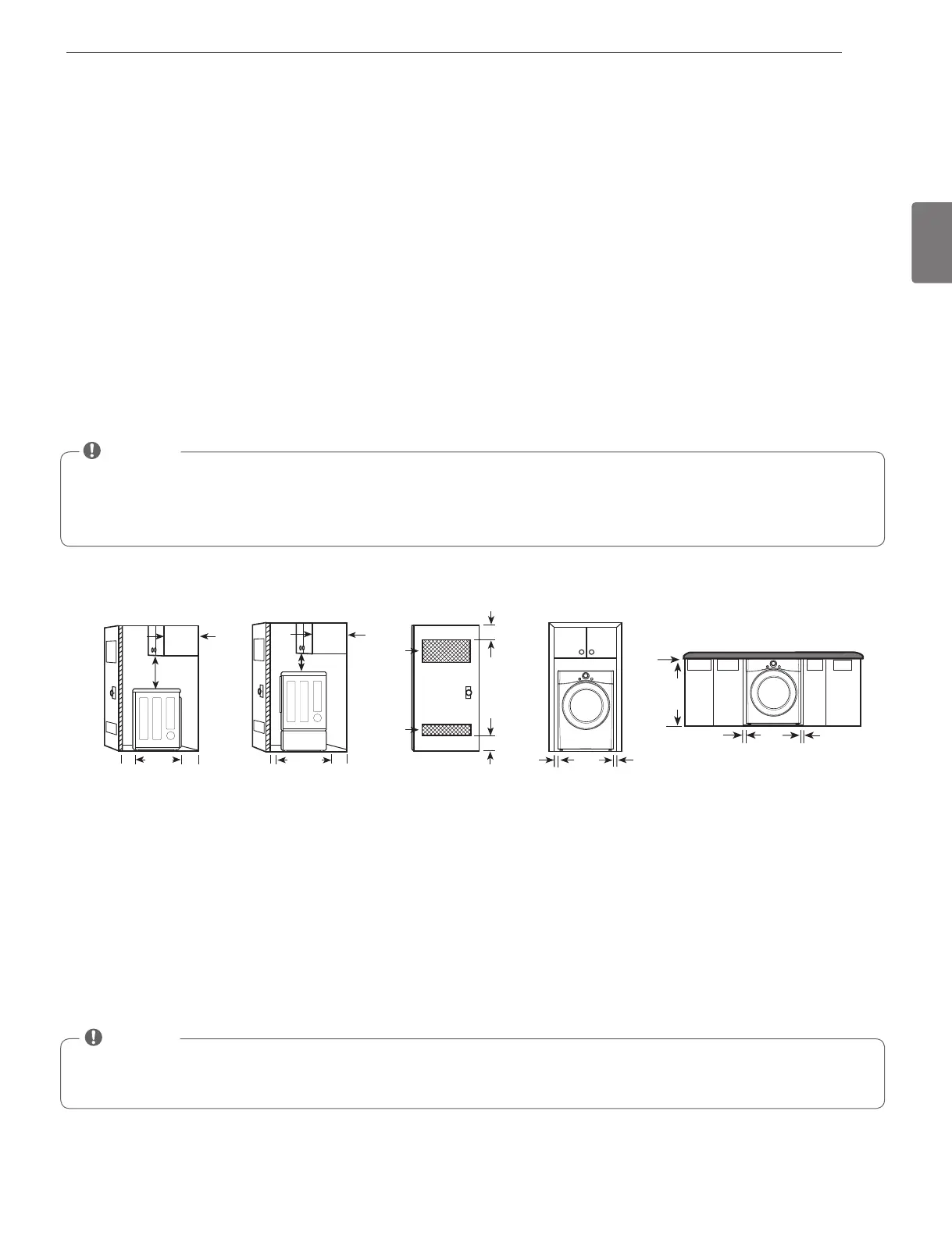 Para esta secadora, se recomienda dejar las siguientes separaciones. Esta secadora se ha evaluado dejando una separación de