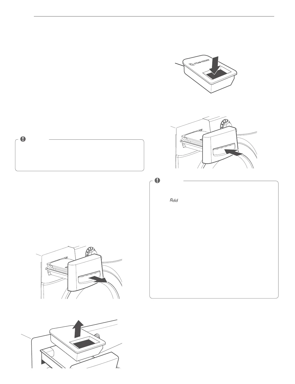 • Sólo use agua. No llene el alimentador de vapor con sustancias