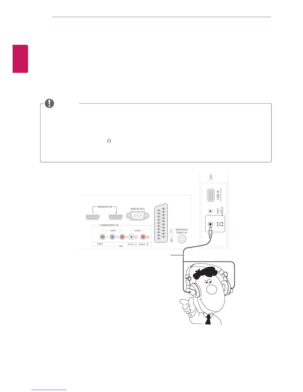 Transmits the headphone signal from the TV to an external device. Connect the TV with the headphone as