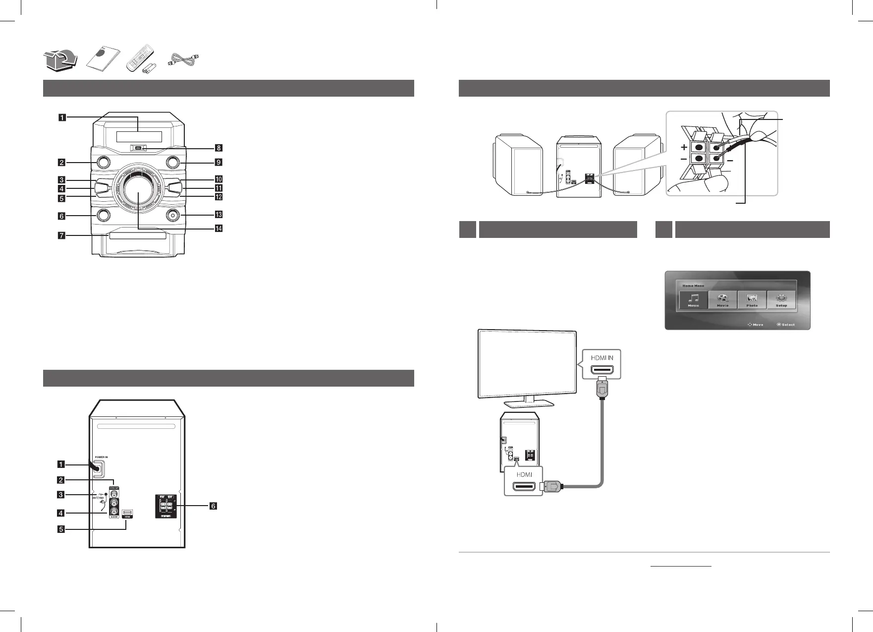 Home menu appears on the TV screen. Enjoy various