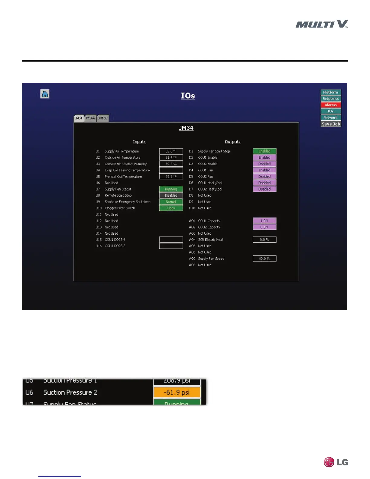 • Indicates if any of the inputs or outputs are in a fault position and not working properly. Faults are indicated with orange shading (shown
