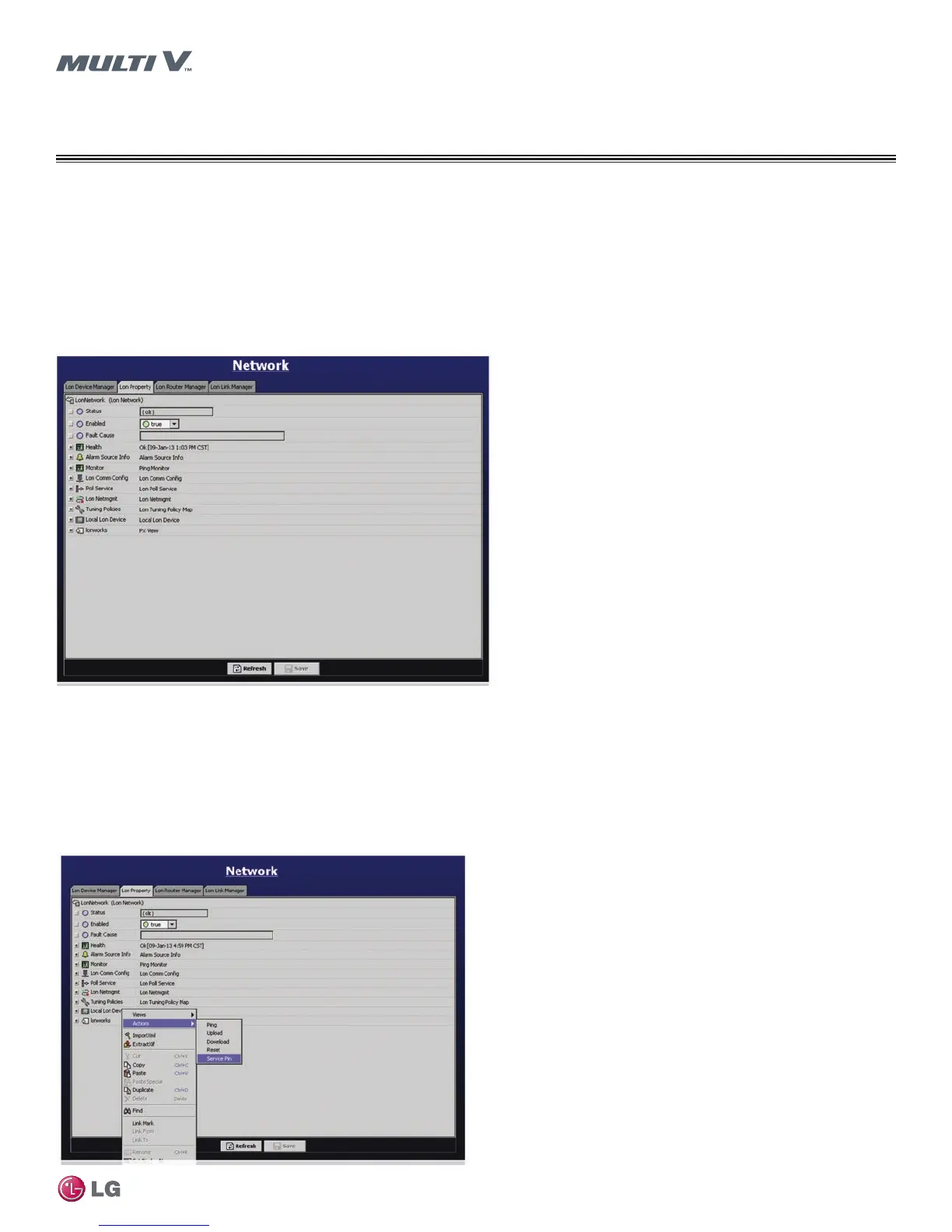2. Navigate to the network page. The network page contains four tabs for a LonWorks configured unit. The Lon Device Manager holds a