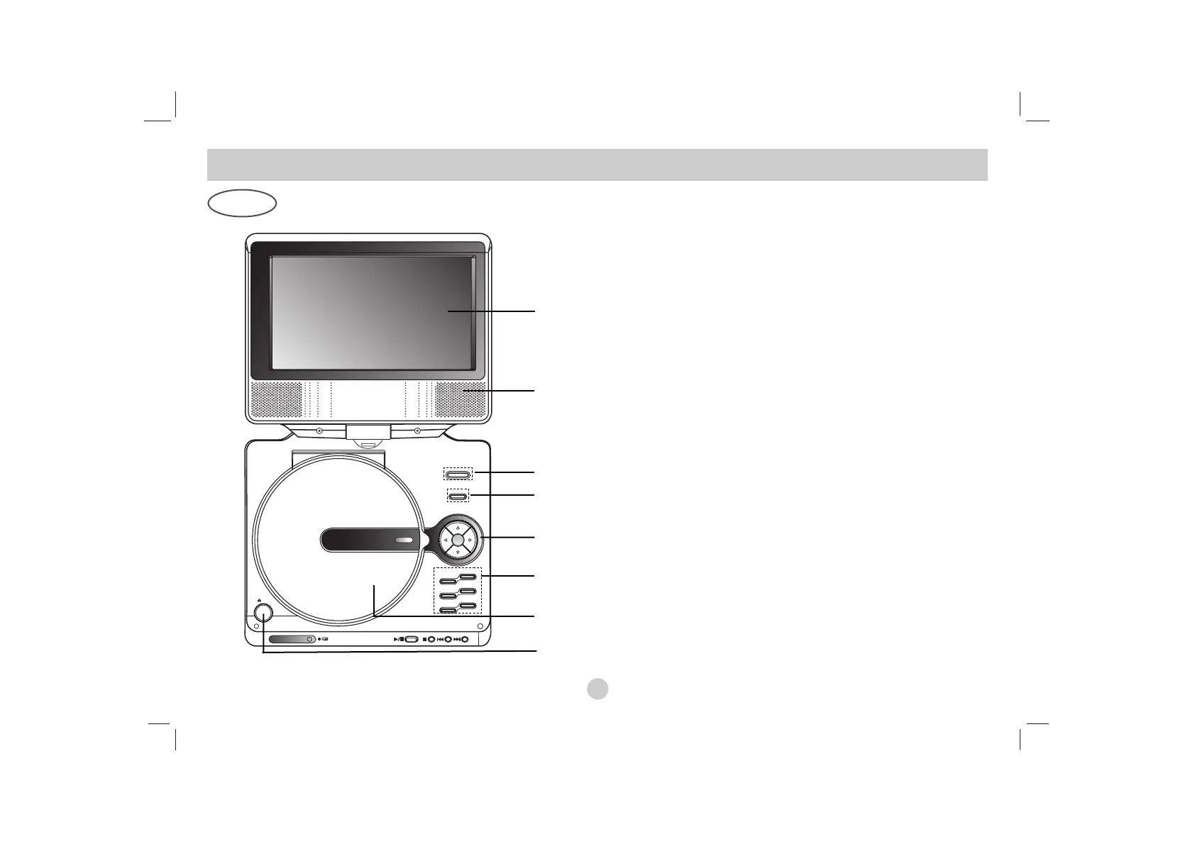 8. OPEN button : Push this button to open the Disc lid.
