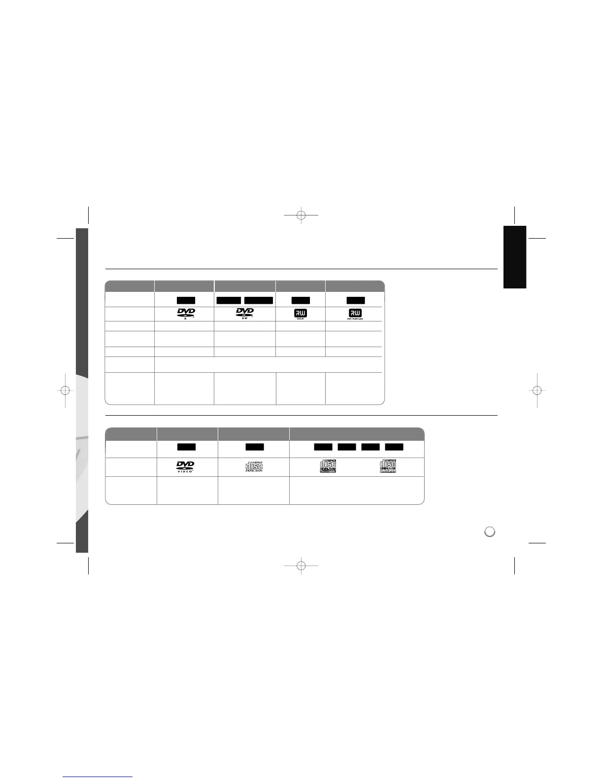 This unit can play and record all widely-used DVD types. The table below shows some specific compatibility differences depending on the disc types.