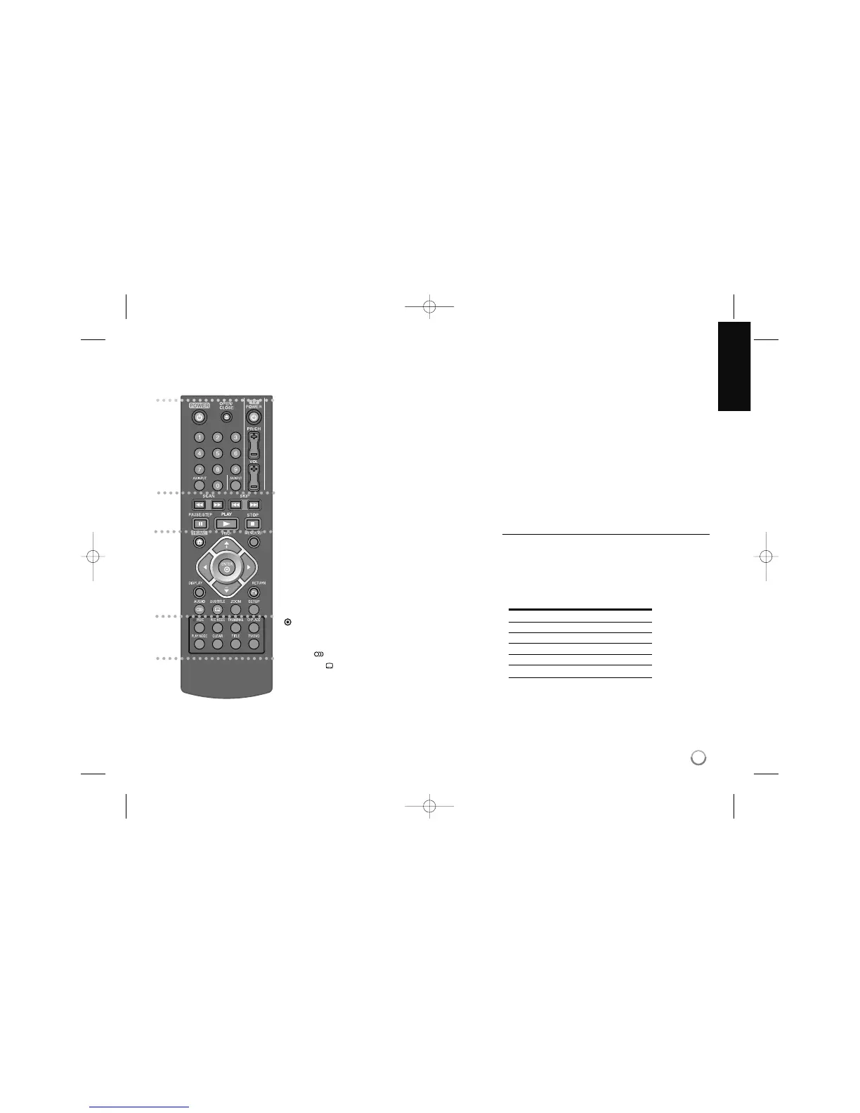 TV/DVD: Press to switch between ‘TV mode’, in which you