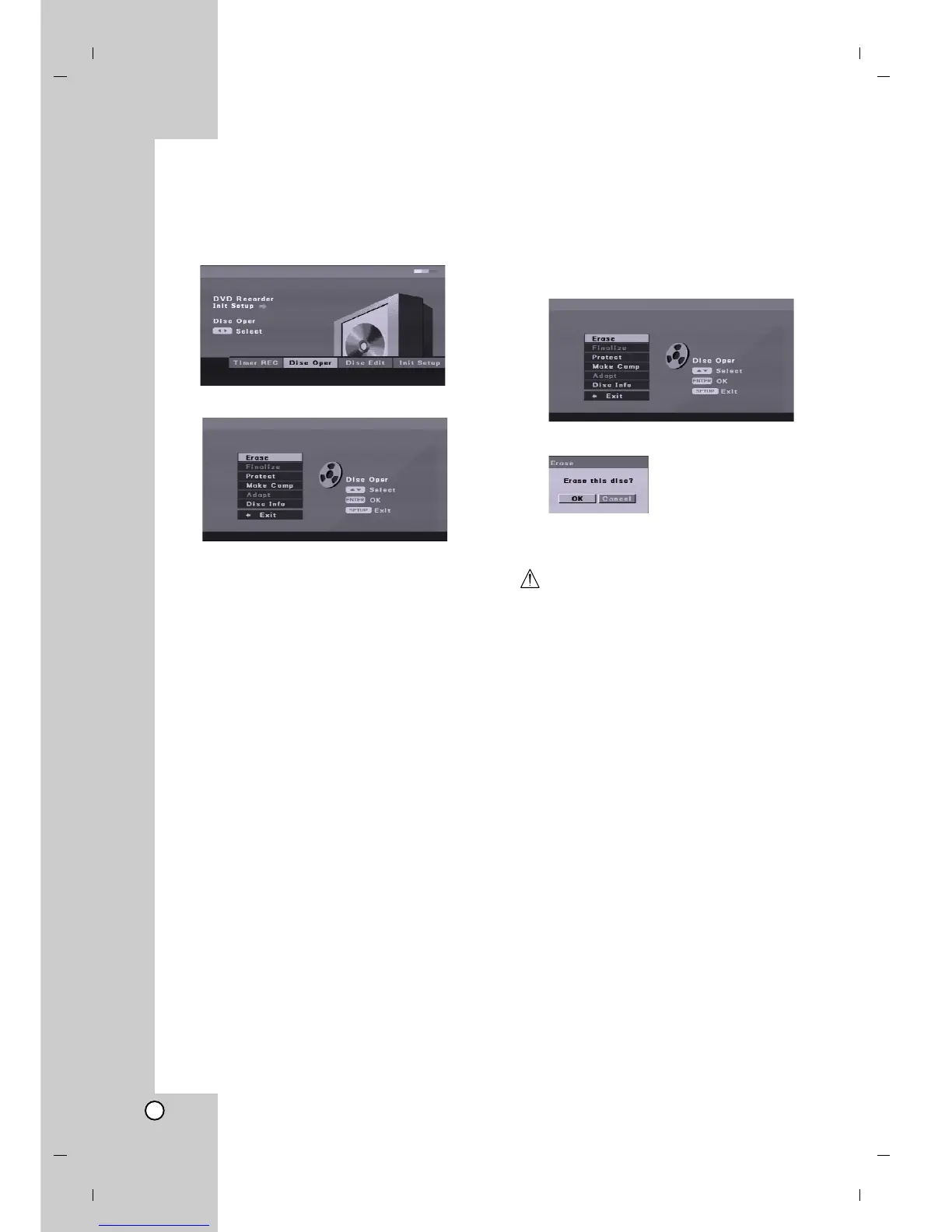 1. Select [Erase] option on the [Disc Oper] menu.