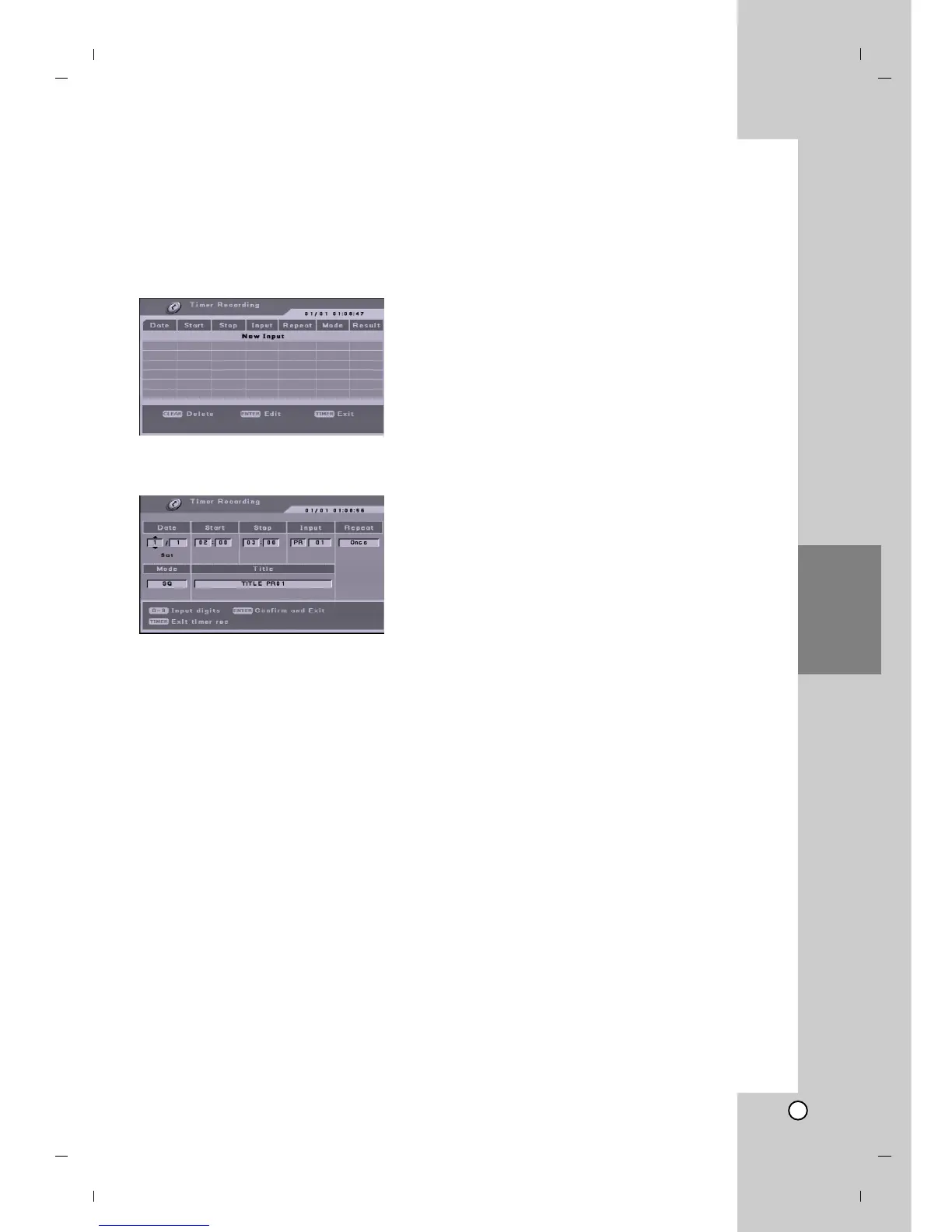 Press TIMER REC to exit the Timer Record