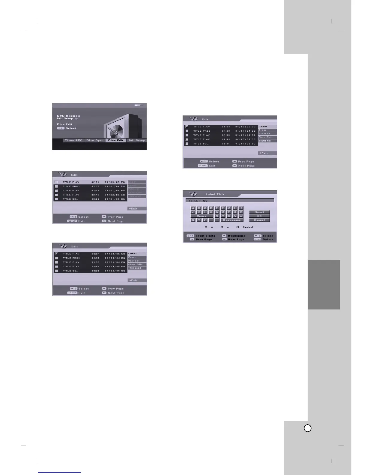 [Label] Edits the title name. (See page 39.)