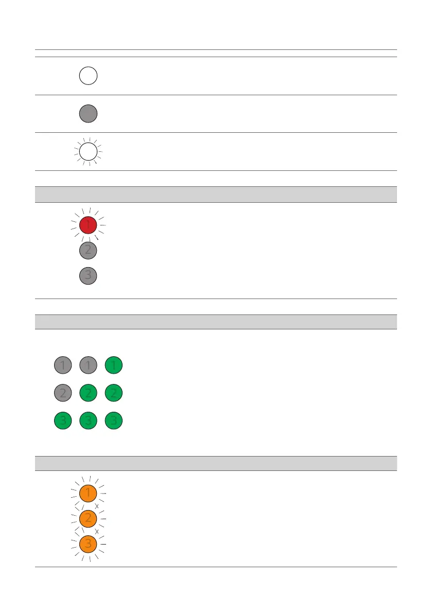 • Volume up: The LEDs get brighter and light up one by one.