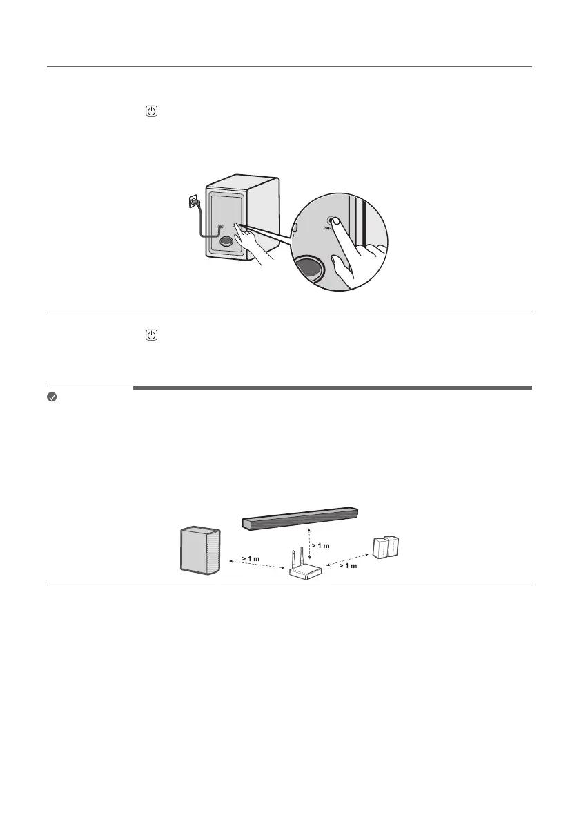 • To prevent wireless interference, maintain a distance of at least 1 m between the soundbar or the