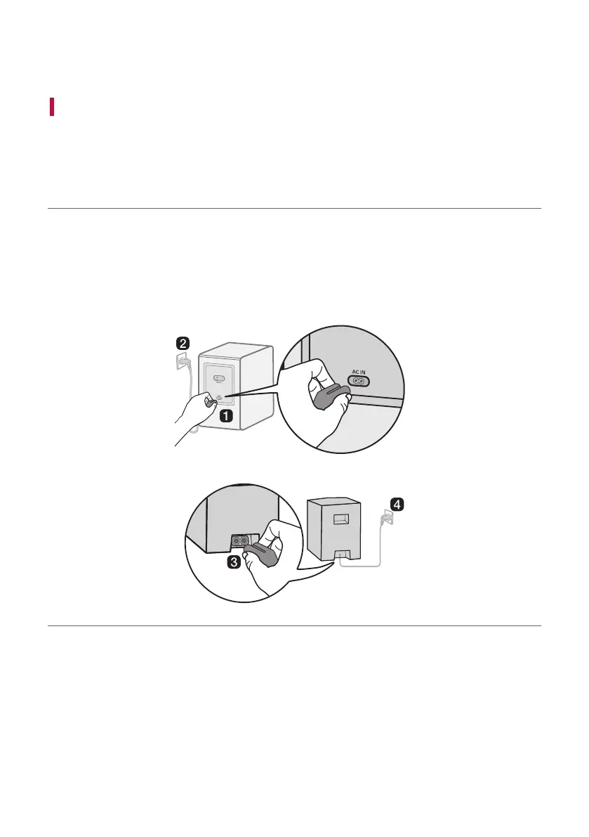 b Plug the power cable connected to the wireless subwoofer into an outlet.
