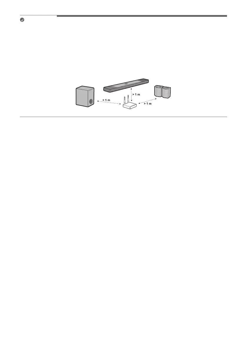 • To prevent wireless interference, maintain a distance of at least 1 m between the soundbar or