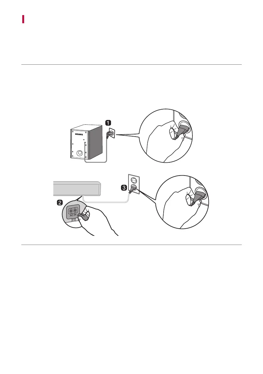 c Plug the power cable connected to the sound bar into an outlet.