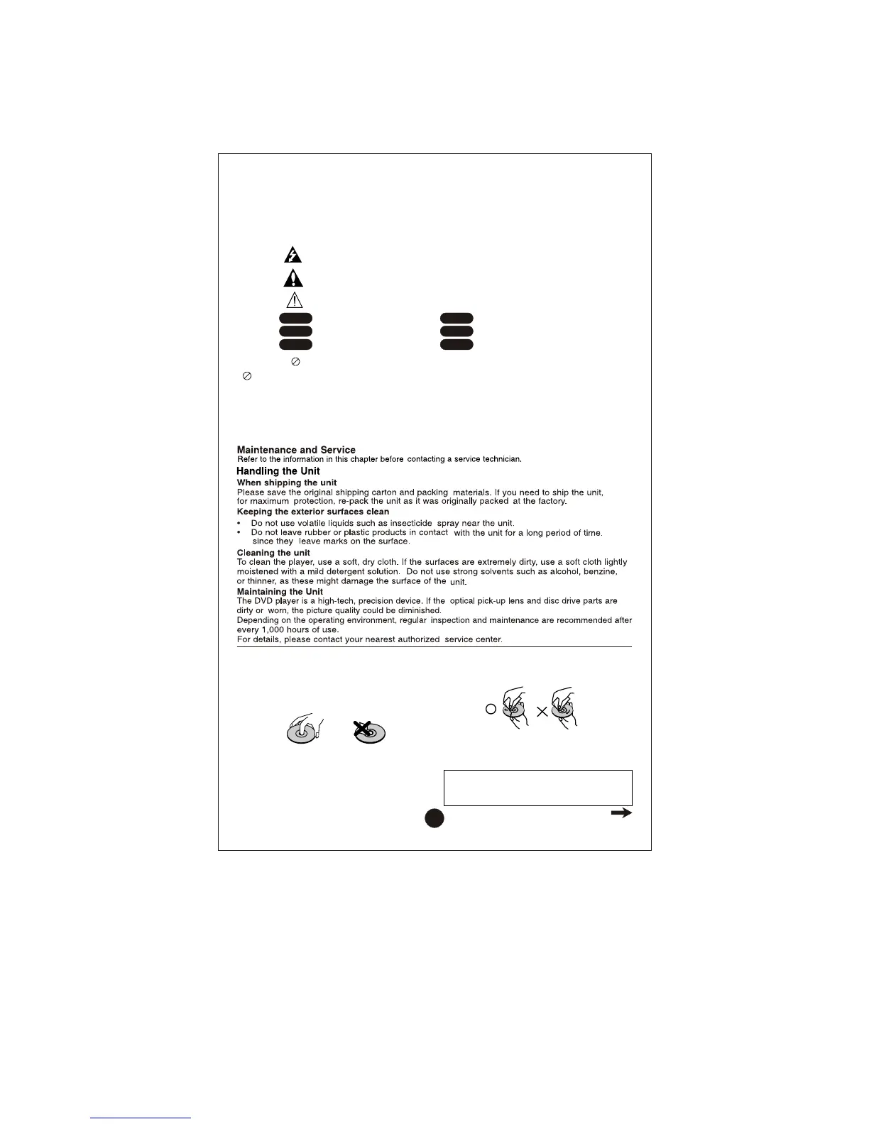 Your DVD player . Should the unit require service, contact an authorized This manual provides information