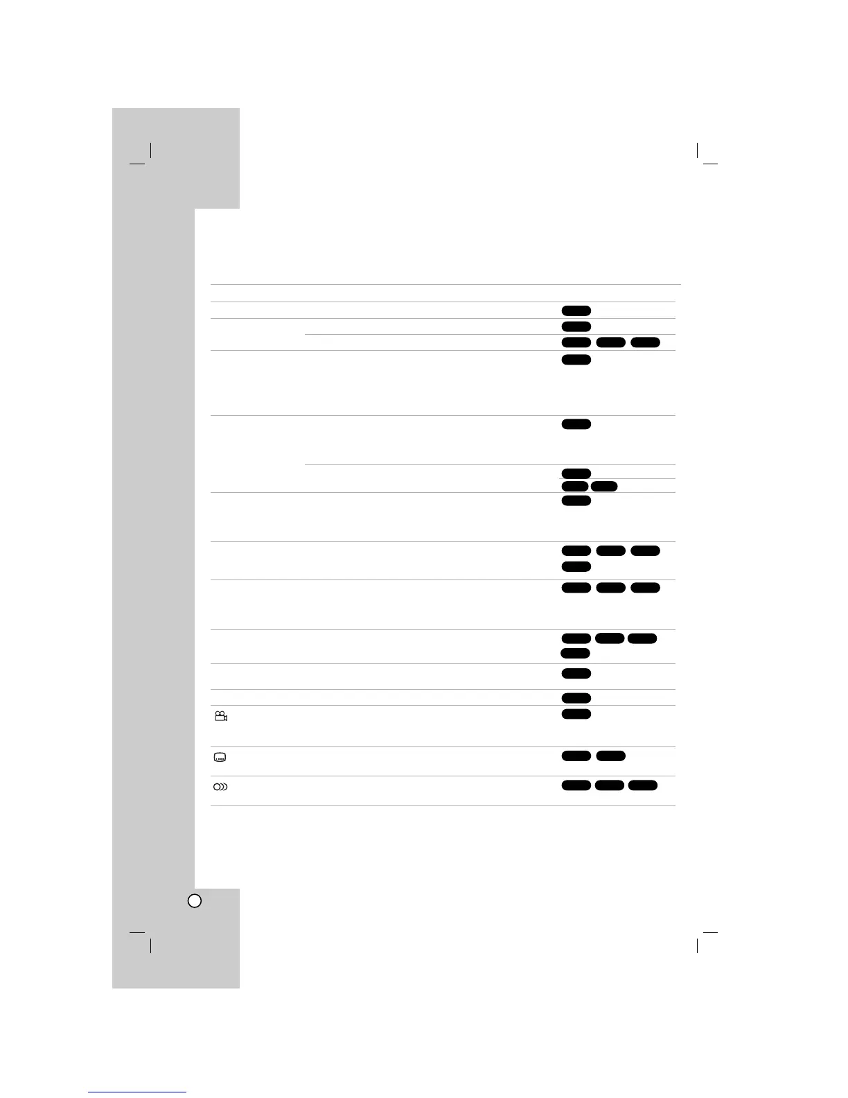 Video CD, Audio CD, DivX/MP3/WMA discs: Track/All/Off