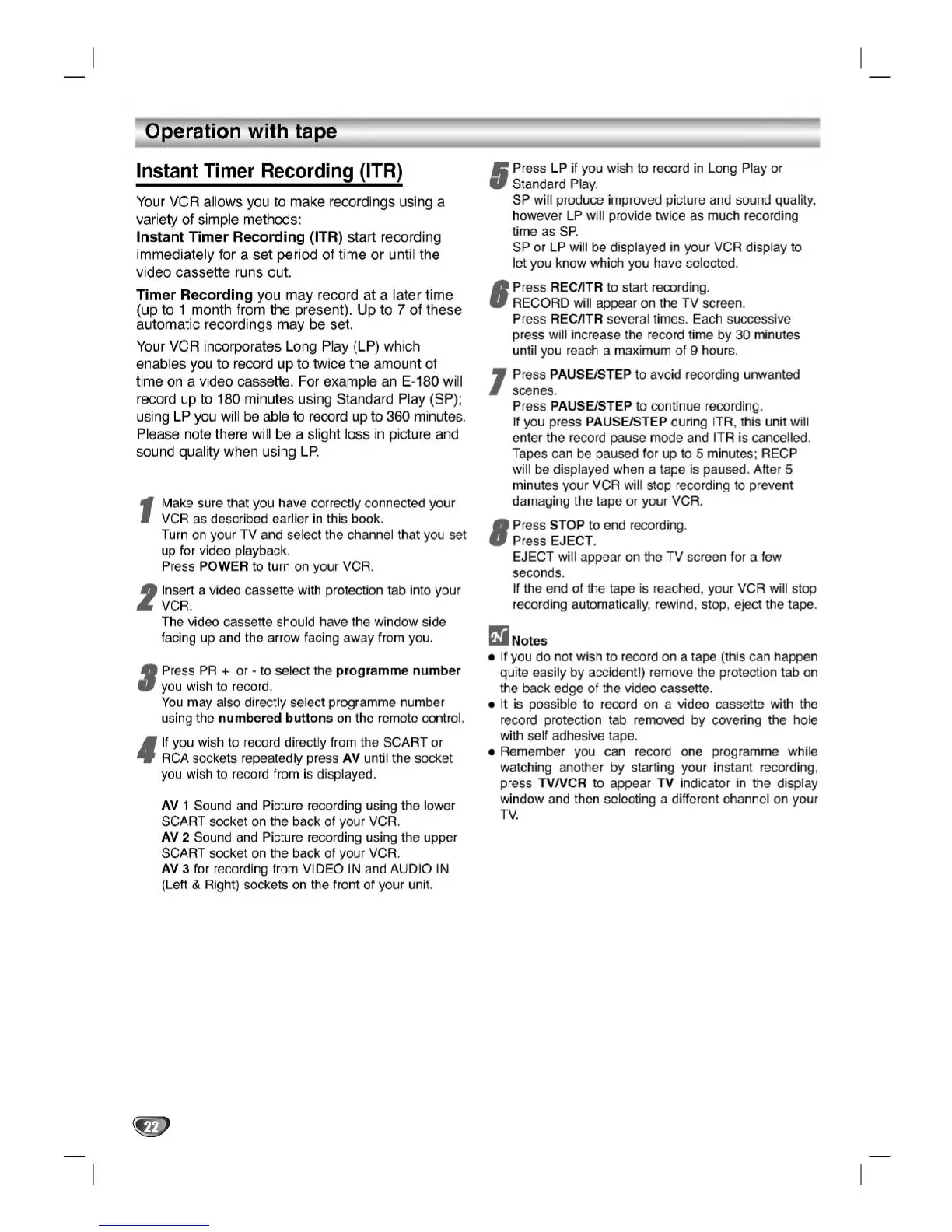 LG DVC8700 - VCR Recording Methods: Instant Timer; Instant Timer Recording (ITR) Guide; VCR Recording Setup