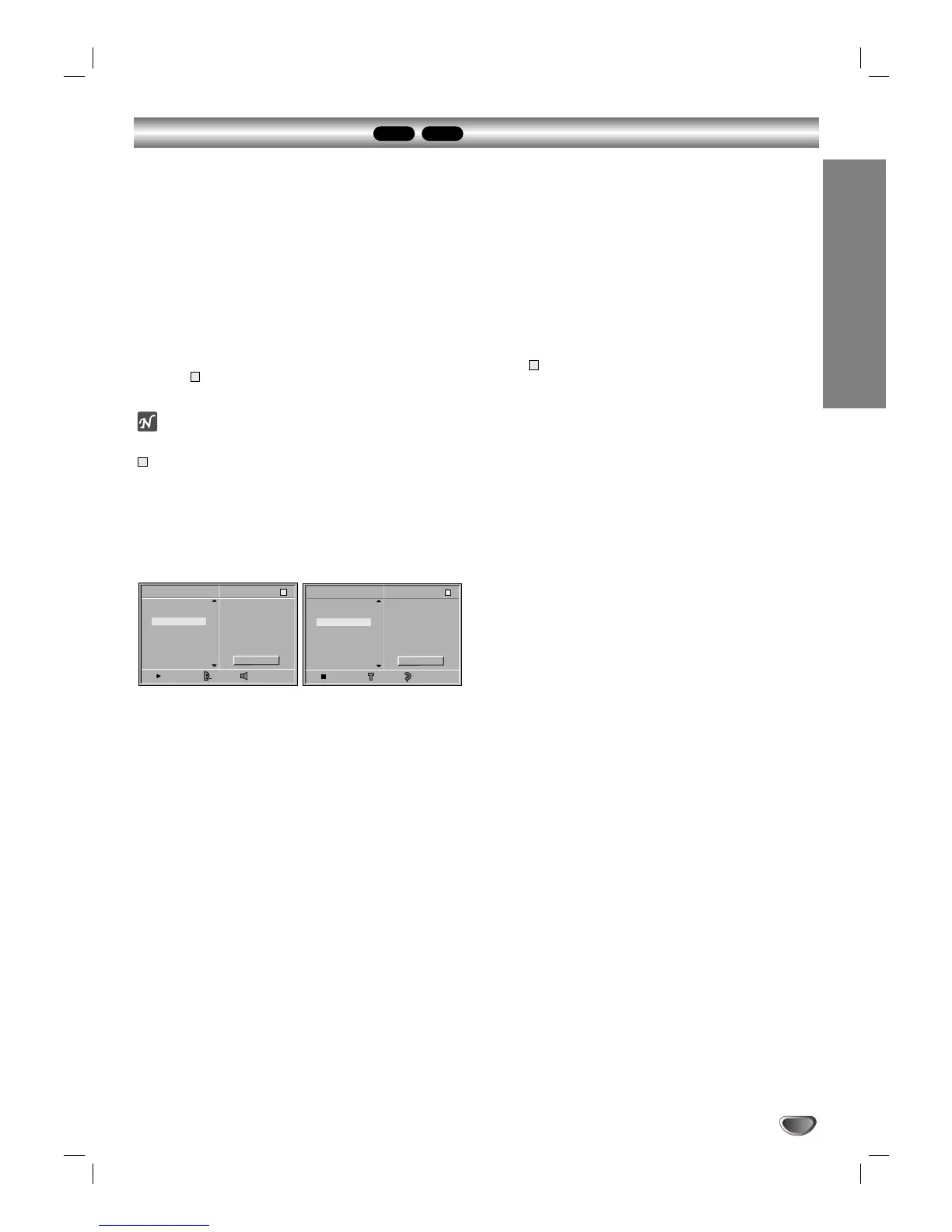 Audio CD menu MP3 menu