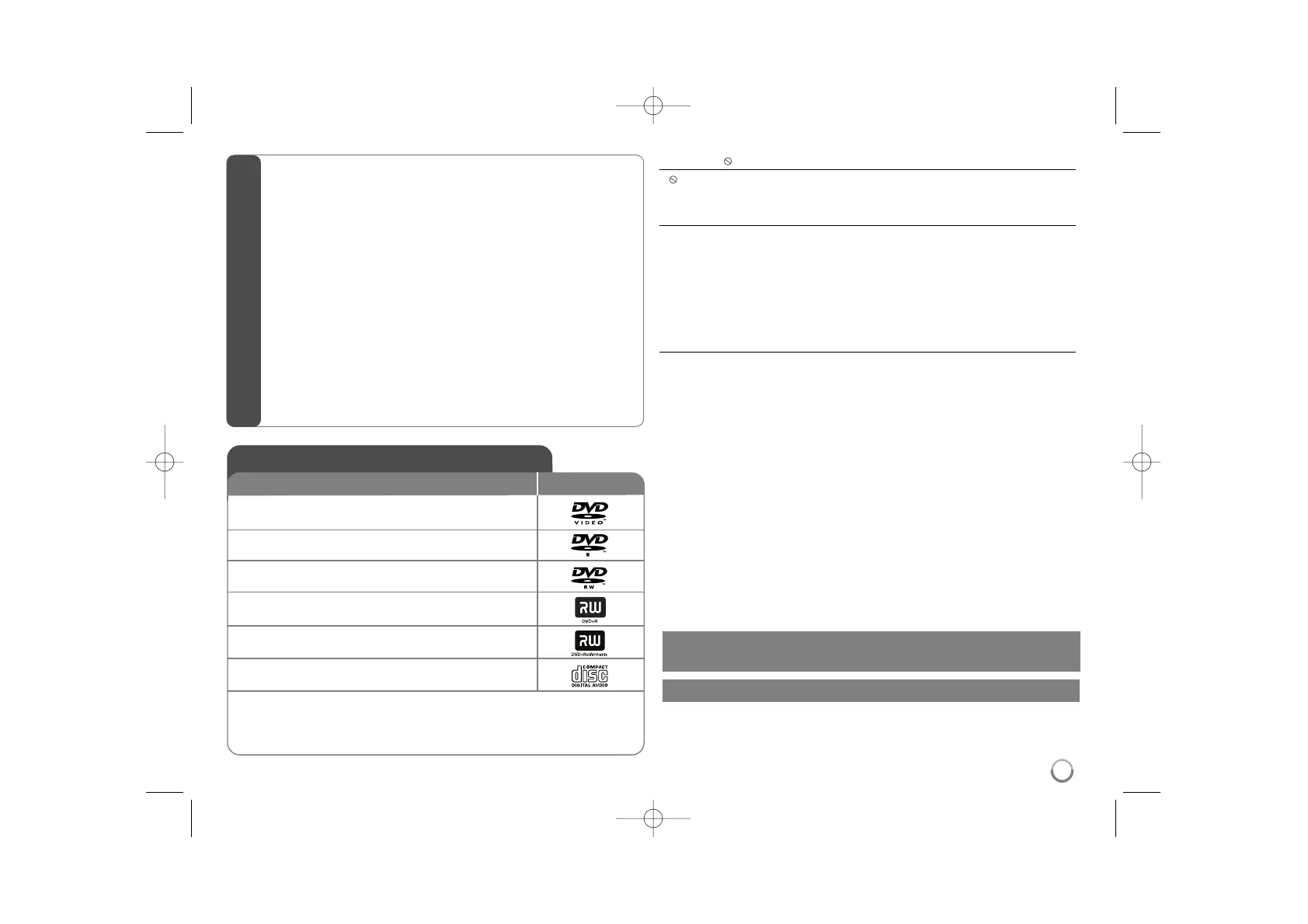 This unit plays DVD±R/RW and CD-R/RW that contains audio titles, DivX, MP3,