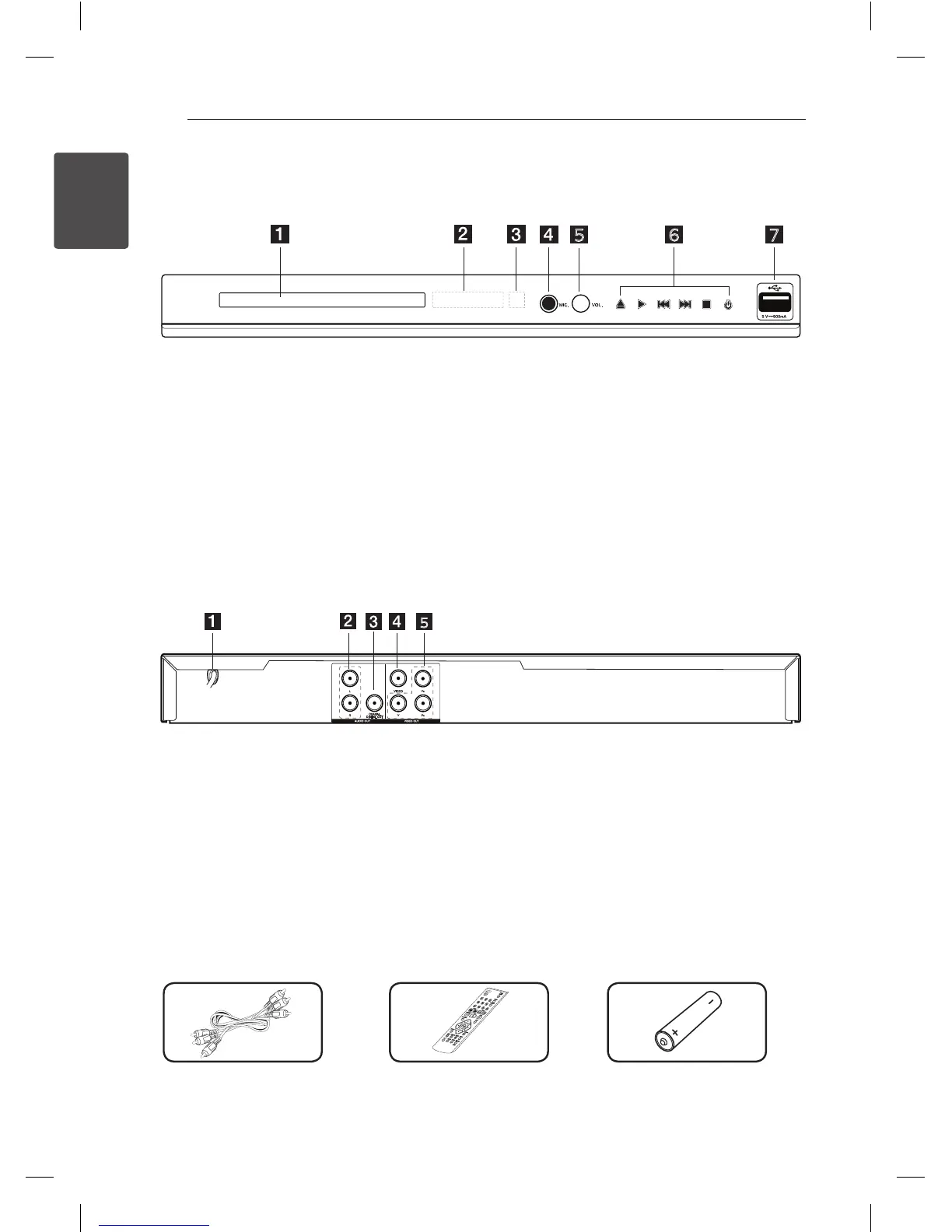LG DVX641 - Front Panel; Rear Panel; Supplied Accesorries
