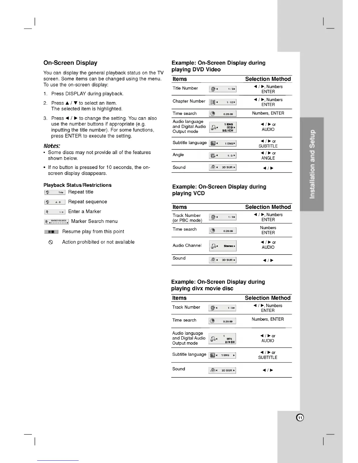 LG DVX9500 - On-Screen Display and Playback Status