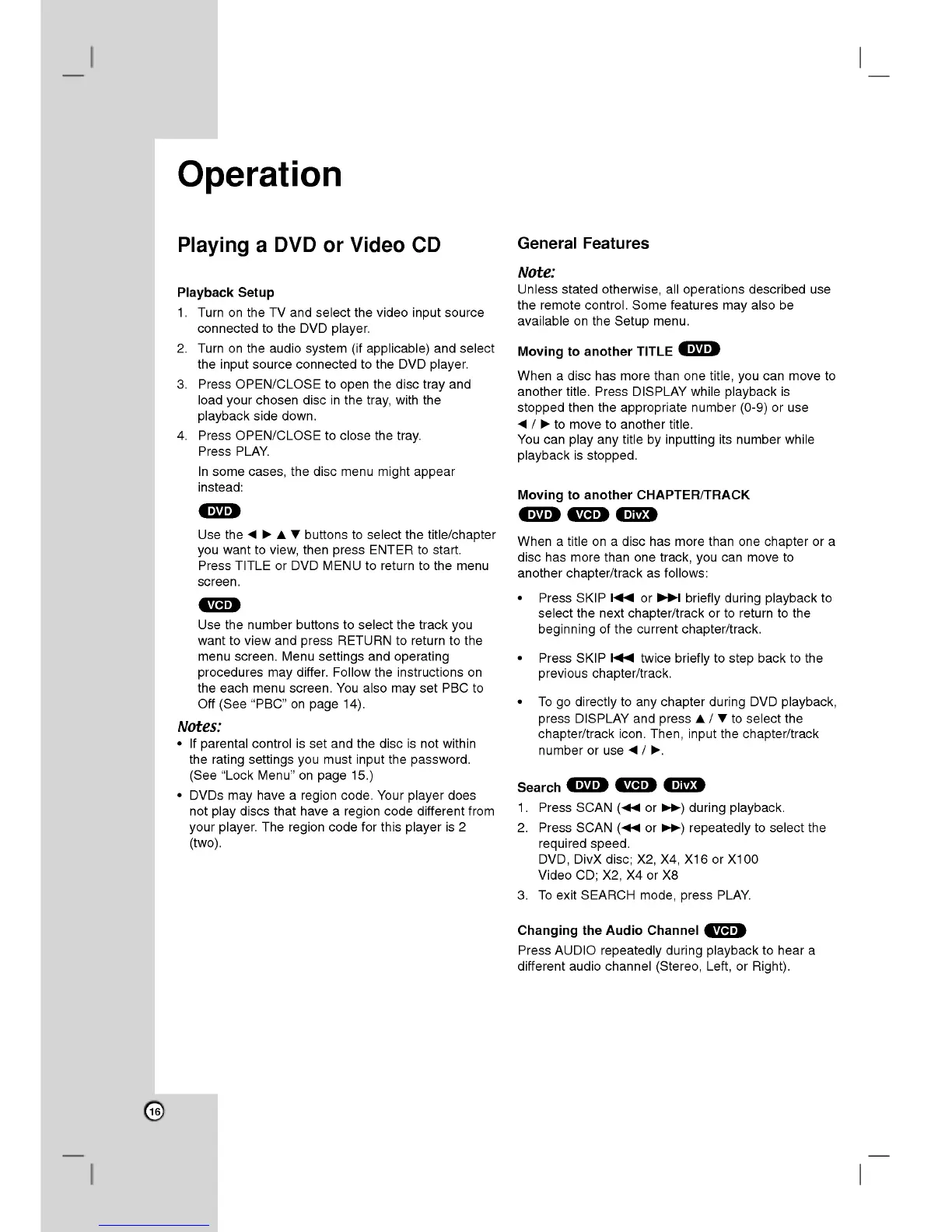 LG DVX9500 - Operation; Playing DVDs and Video CDs