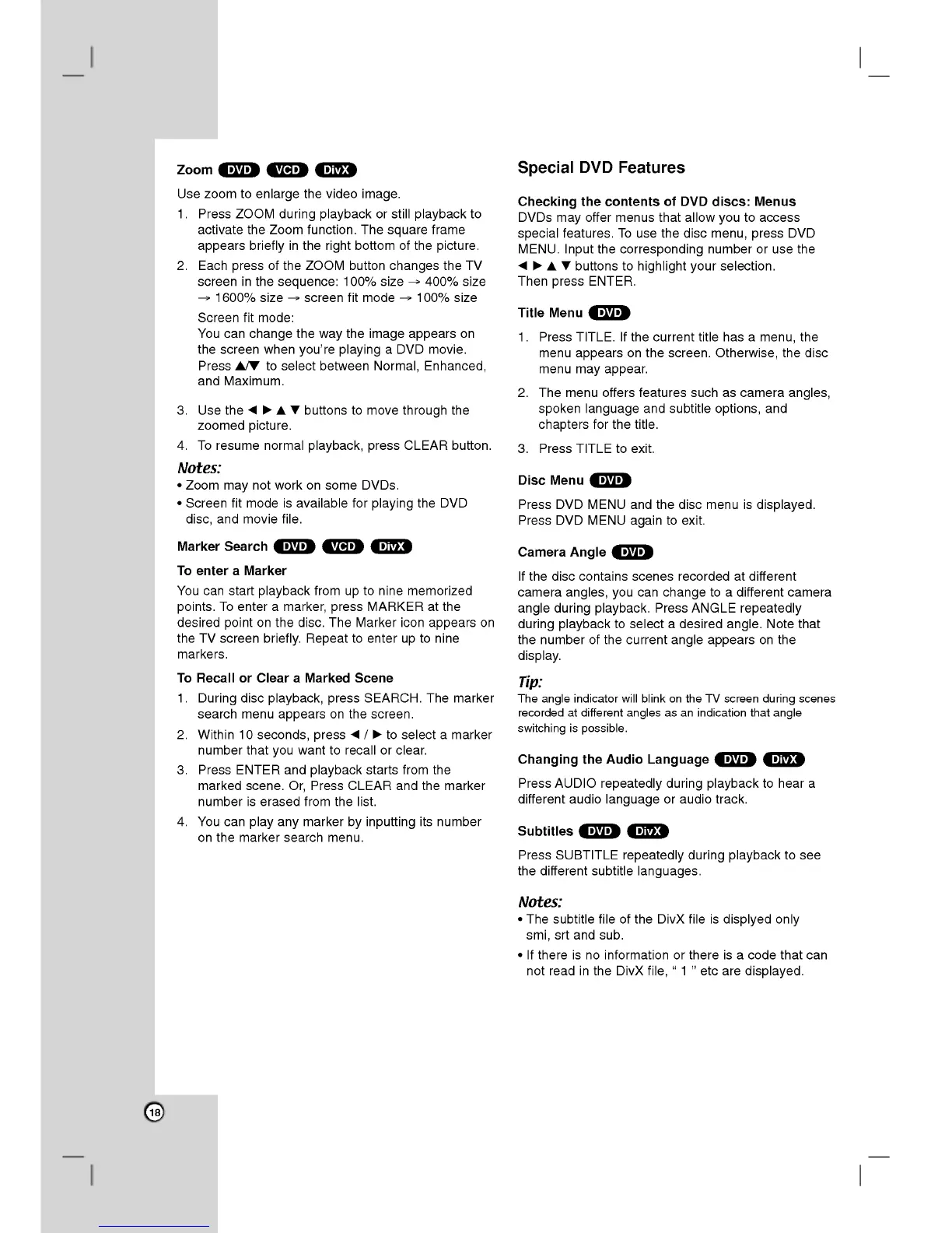 LG DVX9500 - Zoom, Markers, and Special DVD Features