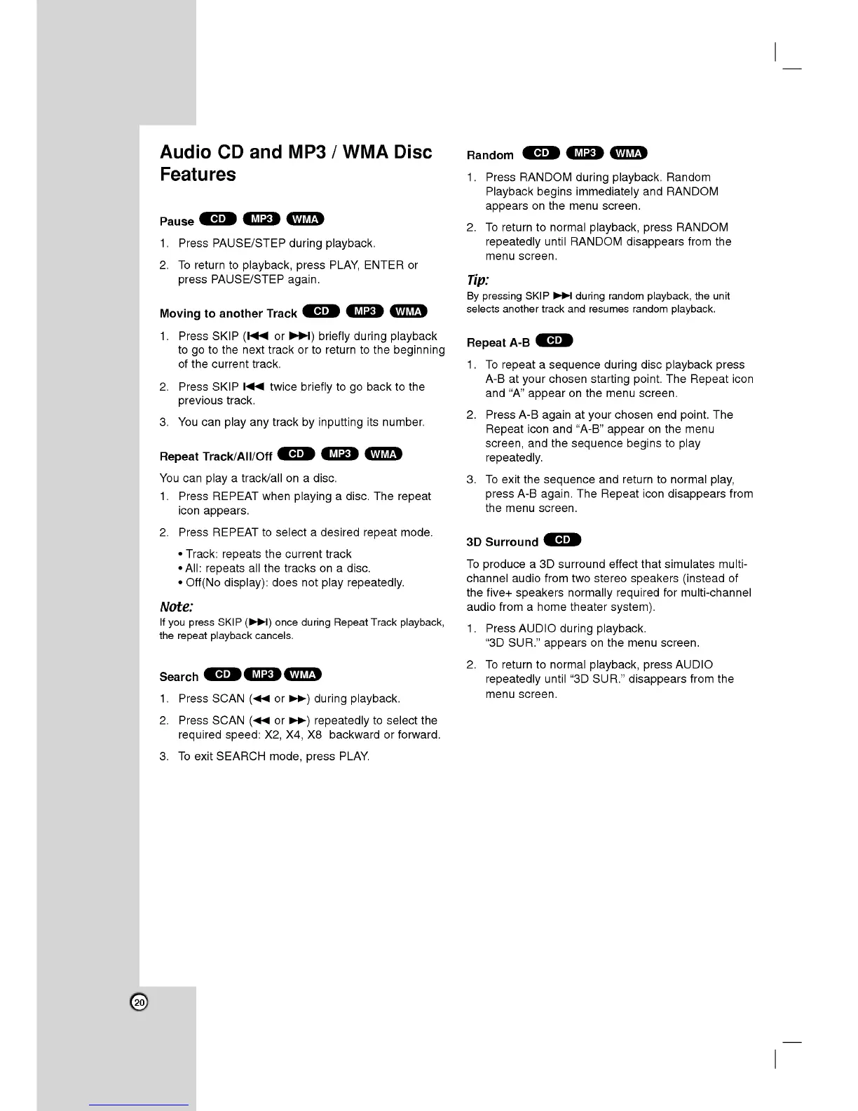 LG DVX9500 - Audio CD;MP3;WMA Playback Features