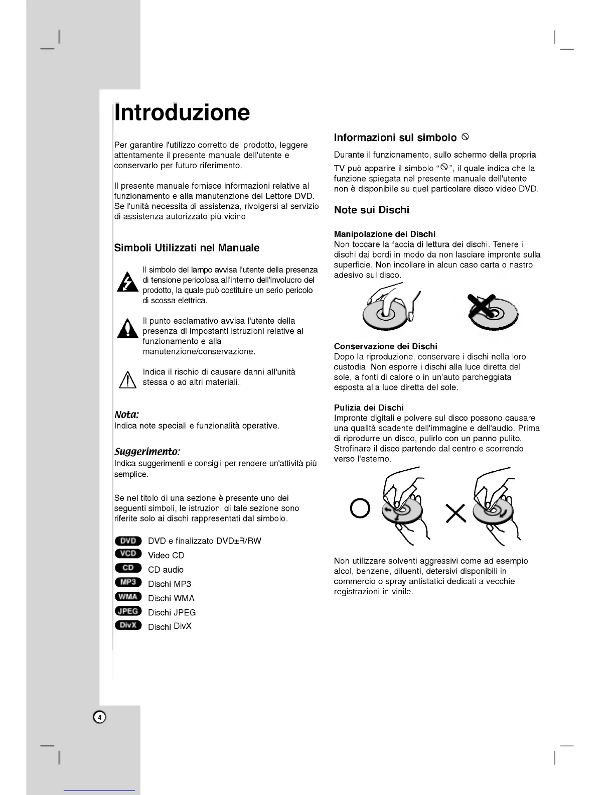 LG DVX9500 - Conservazionedeidischi; Informazioni Sul Simbolo; Introduzione; Puliziadeidischi