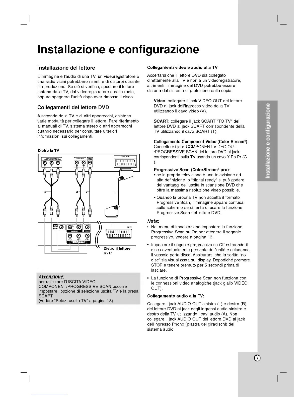 LG DVX9500 - Collegamenti Video E Audio Alla TV; Collegamentidellettoredvd; Installazionedellettore