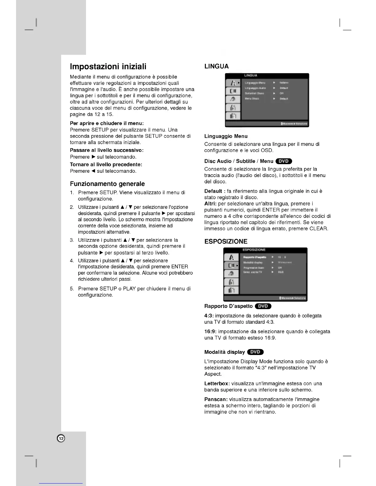 LG DVX9500 - Discaudio;Subtitle;Menu; Esposizione; Funzionamentogenerale; Impostazioniiniziali