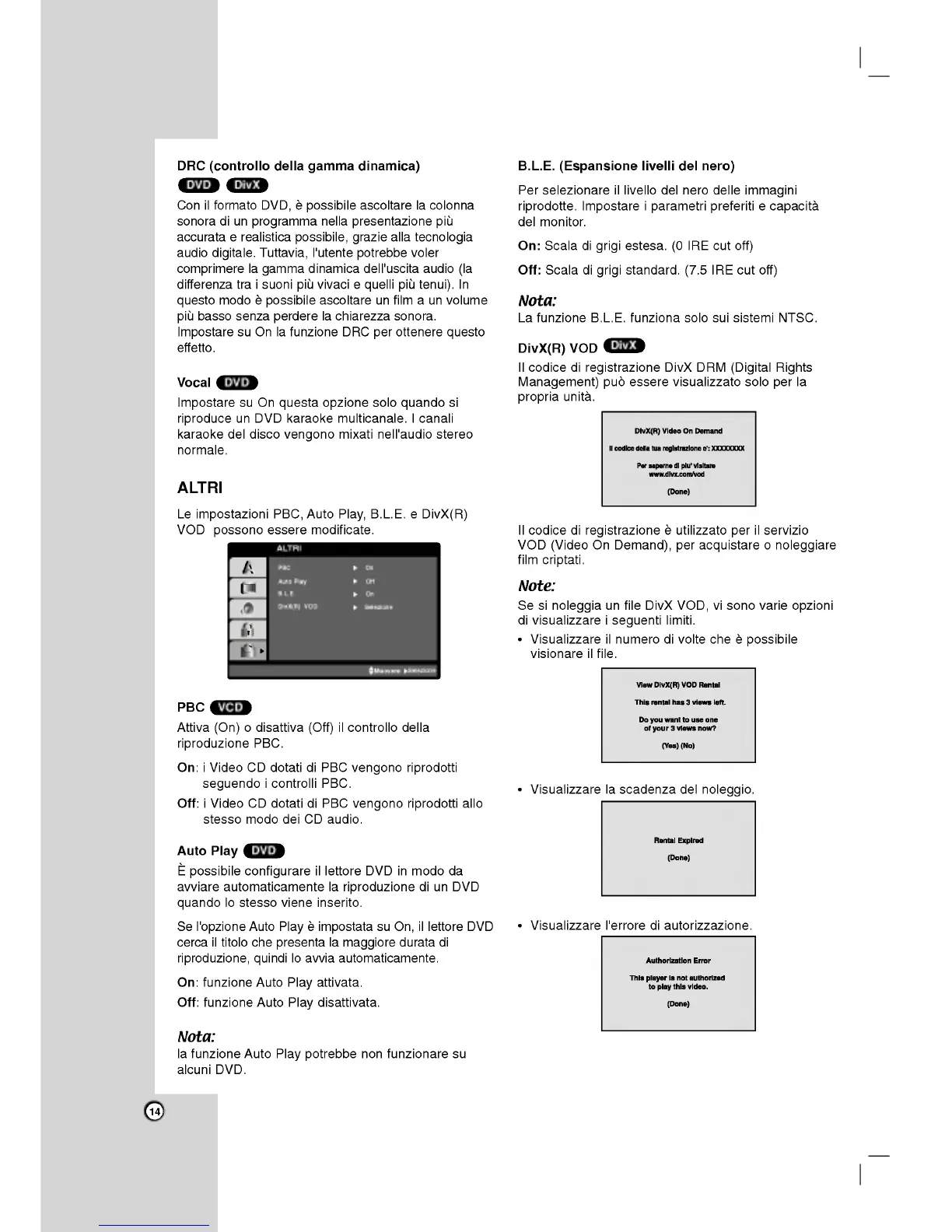 LG DVX9500 - Altri; Autoplay; B.l.e; DIVX(R)Vod