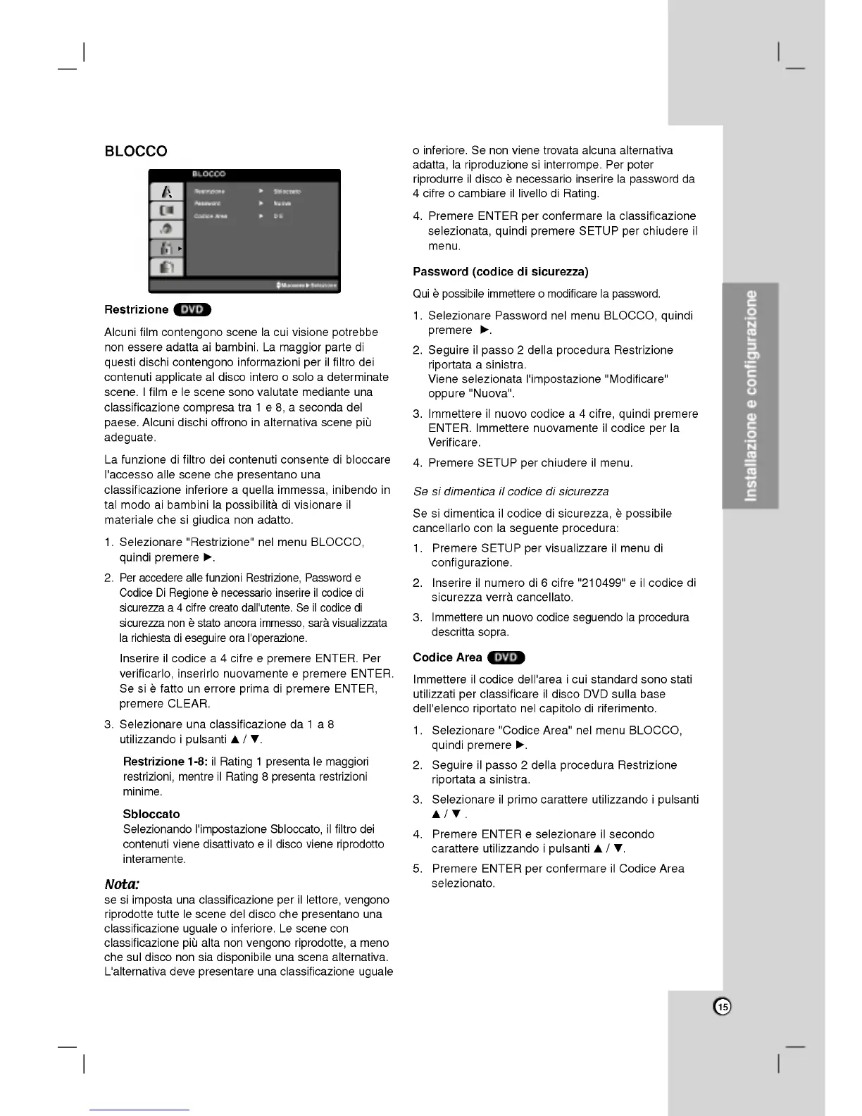 LG DVX9500 - Blocco; Codicearea; Password (Codice DI Sicurezza); Restrizione