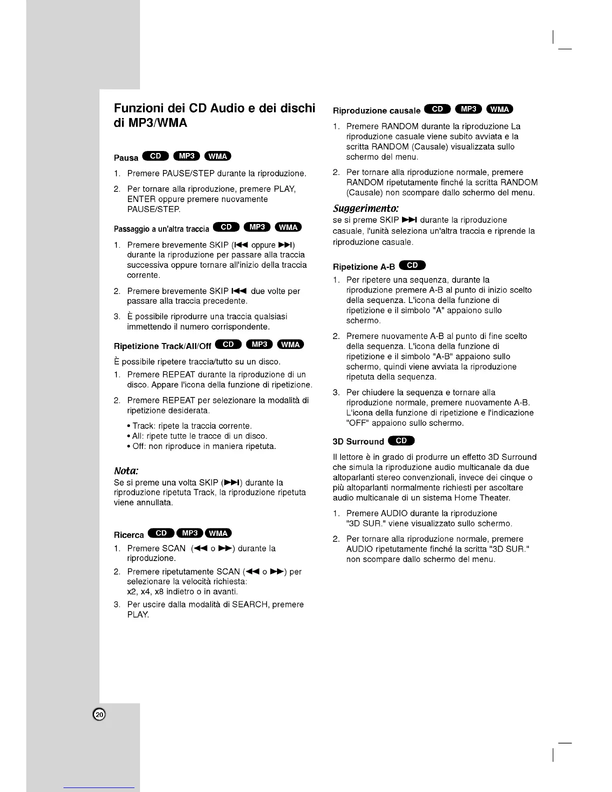 LG DVX9500 - Funzioni Dei CD Audio; Passaggioaunaltratraccia; Pausa; Ricerca