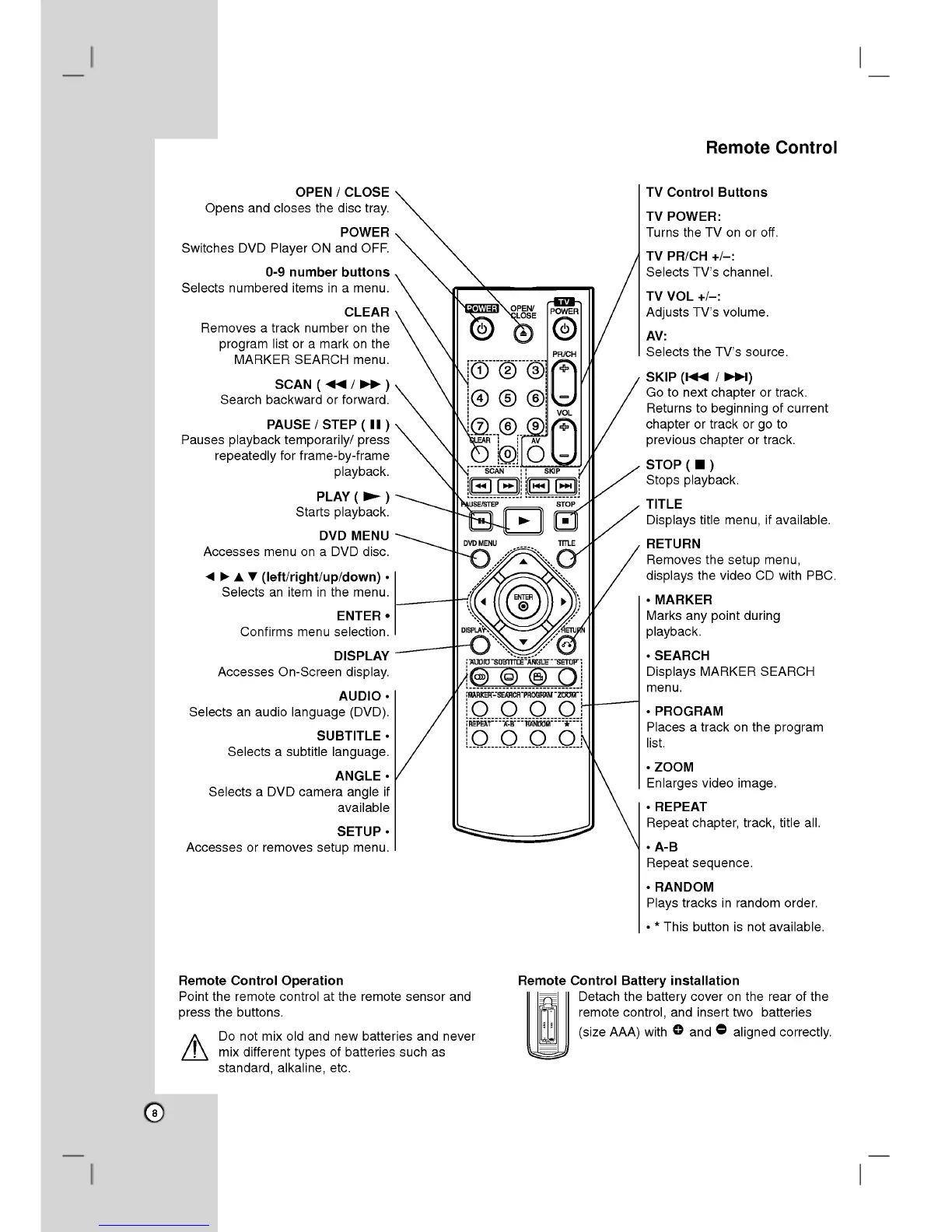 LG DVX9500 - Remote Control; Remote Control Functions and Operation