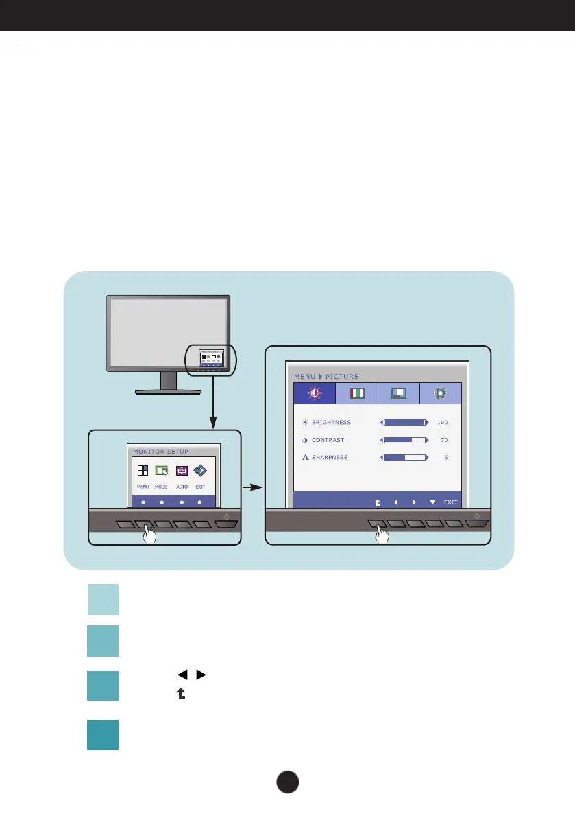 To make adjustments in the On Screen Display, follow these steps: