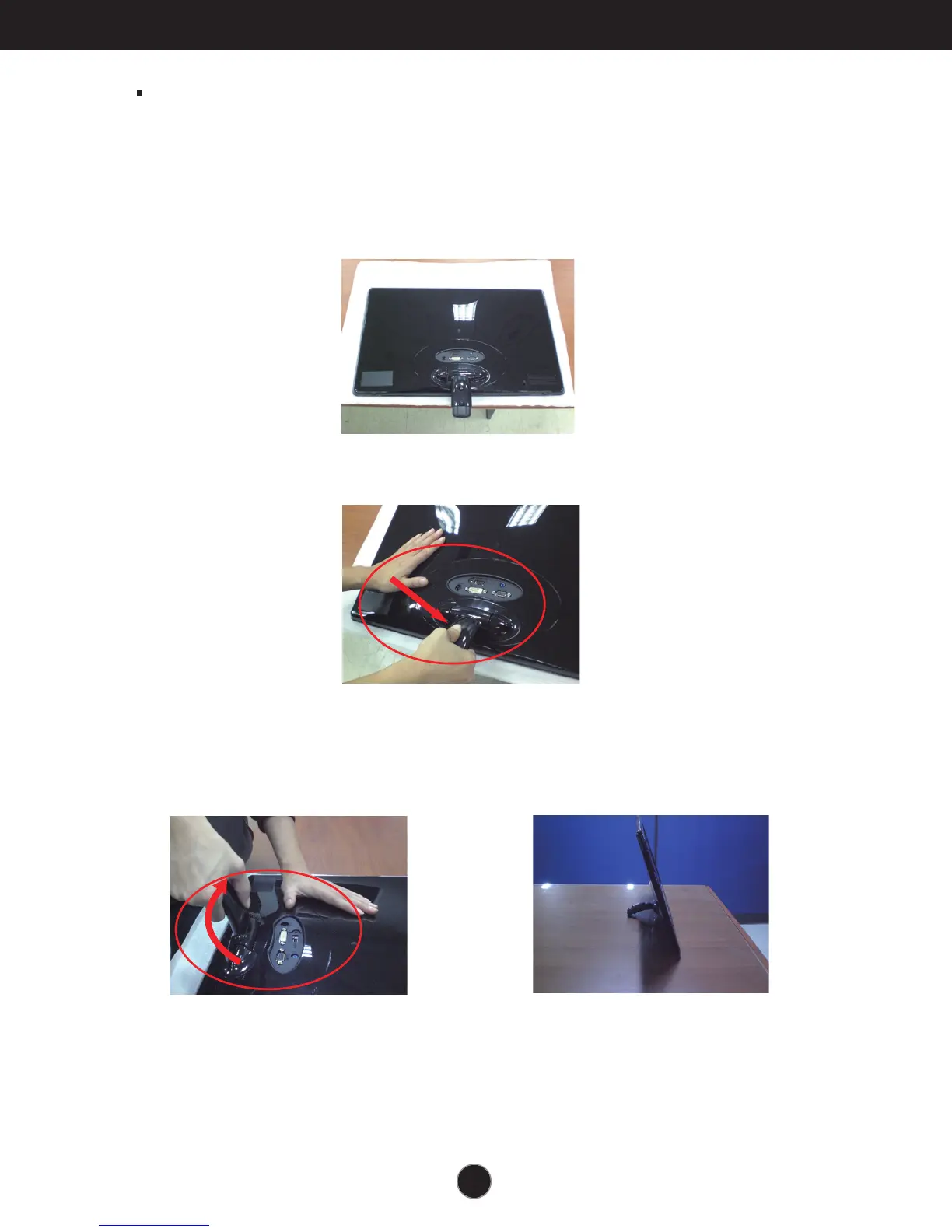 3. After pull the stand body up,take the monitor up carefully and face the front side.