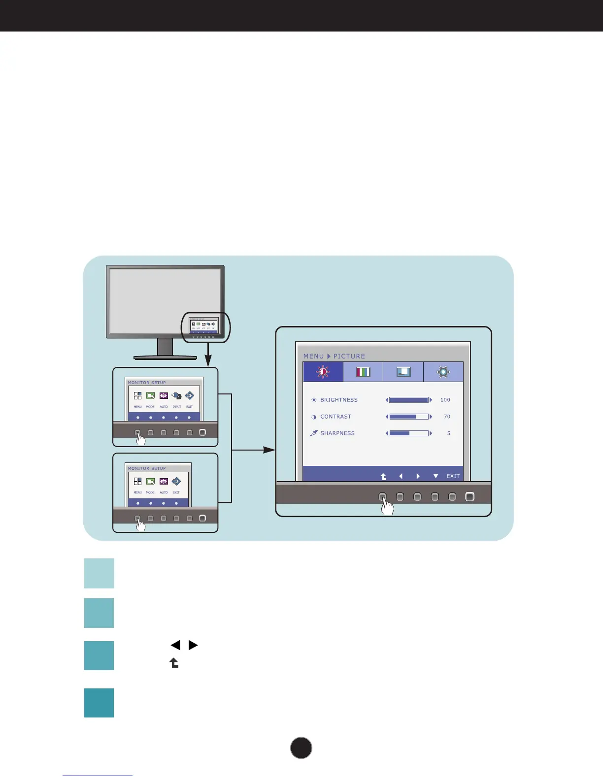 To make adjustments in the On Screen Display, follow these steps: